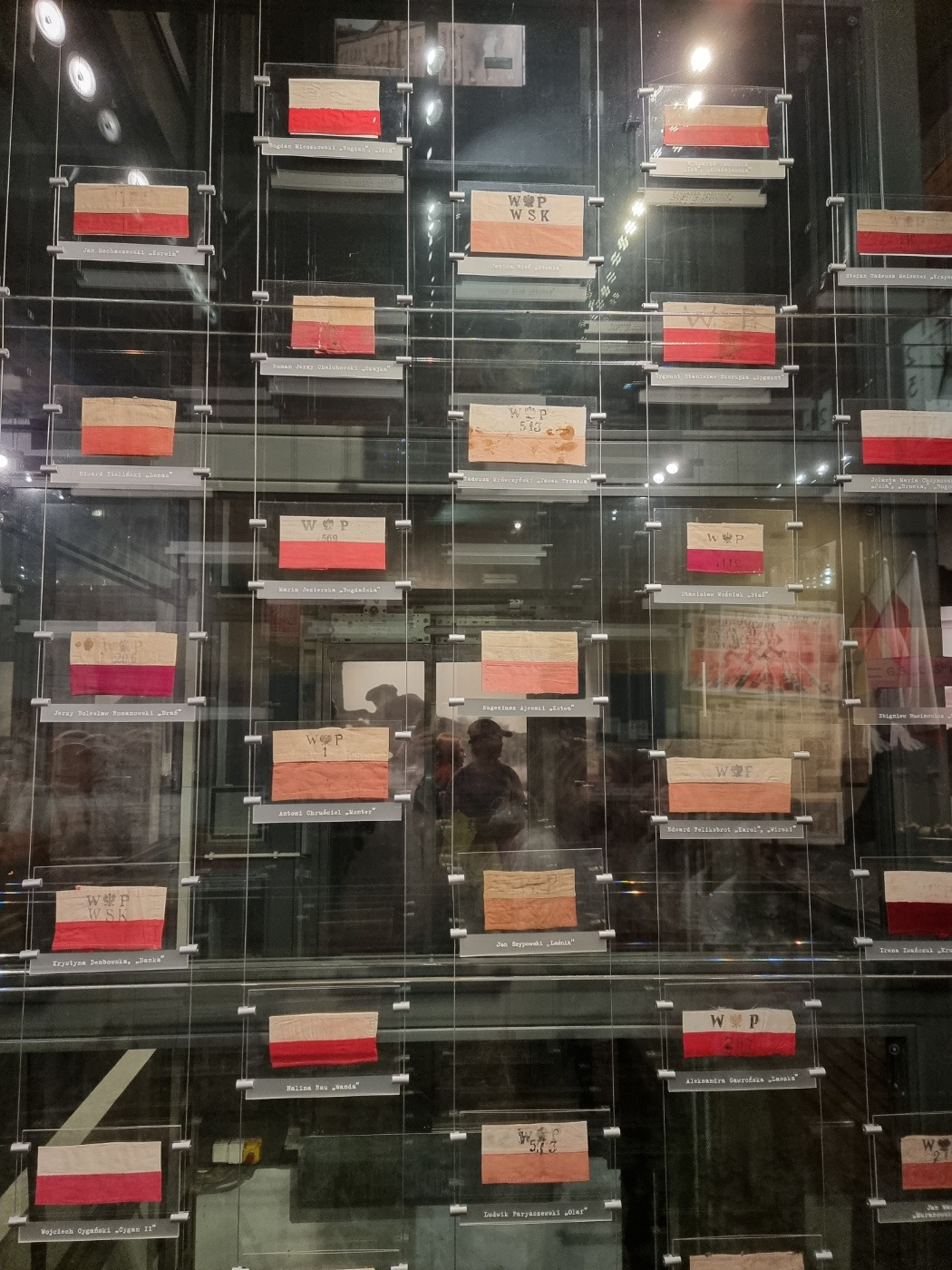 사진 3. 바르샤바 봉기 박물관은 폴란드인의 정신을 보고 싶은 사람에게 추천한다. 세계 2차대전 중 마침내 소련의 붉은 군대가 바르샤바 앞에 도착하였고, 바르샤바 시민들은 이에 호응하여 나치에 거의 무장도 없이 대규모 봉기를 일으켰다. 무장도, 붉은 군대의 지원도 없던 이 봉기는 철저하게 진압당하고 엄청난 사상자를 내었다. 하지만, 이를 기념하는 폴란드의 봉기 박물관은 그들의 용기와 정신을 기억한다. 이 사진은 당시 바르샤바 시민들이 옷에 부착하던 피얼룩이 그대로 묻어있는 봉기자들의 표식이다.