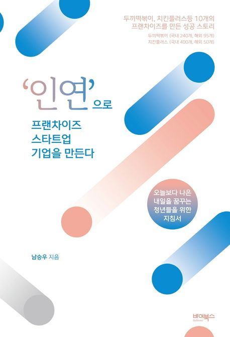 <‘인연’으로 프랜차이즈 스타트업 기업을 만든다>는 두끼떡볶이, 치킨플러스 등 10개의 프랜차이즈를 만들고 성공시킨 저자 남승우가 자신의 경험을 바탕으로 쓴 책입니다. 프랜차이즈 본사 혹은 외식기업의 관점에서, 사업을 키우기 위해 어떤 노력과 고민을 하는지 생생하게 담겨 있습니다. 본사 또한 치열한 생존 경쟁의 참여자 중 하나로 나름의 고충이 없을 수 없는 것이죠. 프랜차이즈 점주 혹은 예비창업자들도 본사의 입장와 관점을 이해하는 데 도움이 되실 만한 내용입니다.