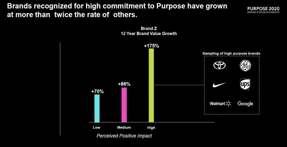 목적을 통해 기업은 성장을 위한 "경쟁 영역을 재 정의"하고, 기존에 정의된 기업 사명(mission)을 넘어 제품과 마케팅 전체에 "가치 제안을 확장된 형태로 재구성"합니다. 목적은 기업의 전략을 바꿉니다. 그리고 목적은 소비자의 삶 전체에서 장기적이고 지속적인 성공을 이끕니다. (2019 Put purpose at the core of your strategy / Harvard Business Review)