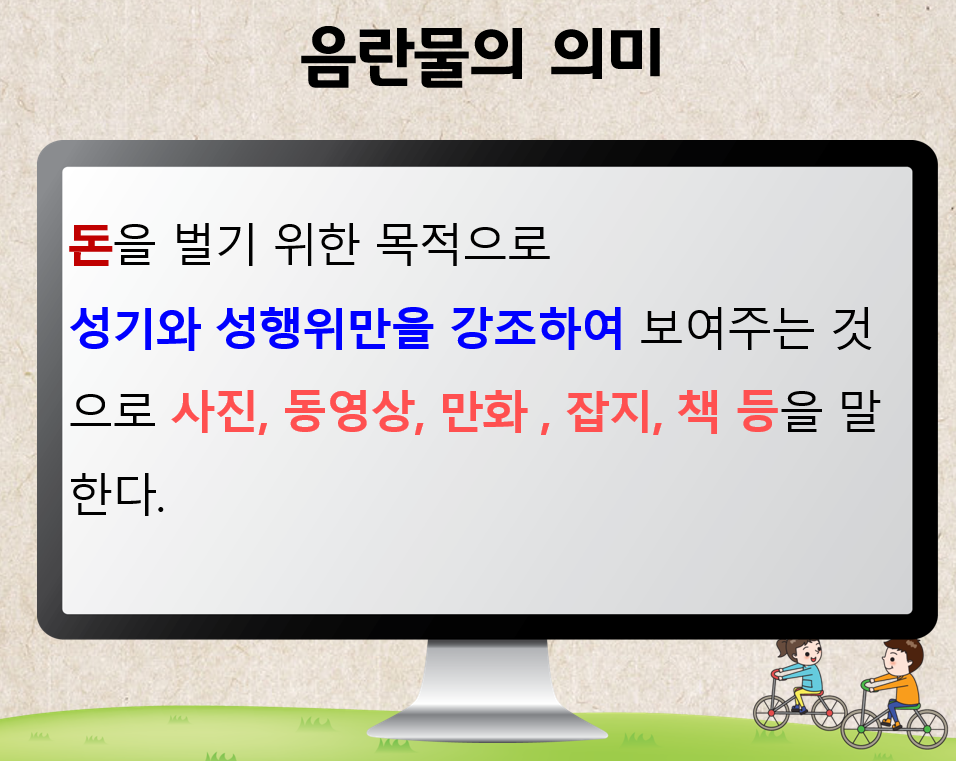 우선 음란물에 대한 정의부터 가르치는데, (적을 알고 나를 알면 백전백승) 여기서 중요한 건 바로 '돈'이다.