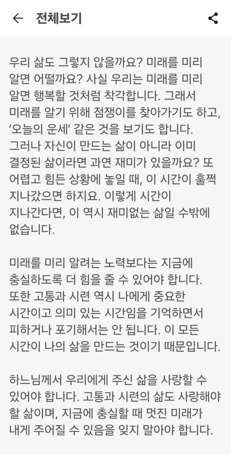 고통과 시련을 겪어낸 후 더 단단하고 성숙해질 제 모습을 기대하며ᆢ
