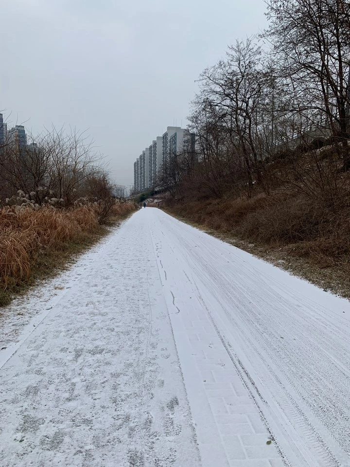 간 밤에 눈이 왔나 보다. 발자국이 많은 거 보니 부지런한 분들이 많구나