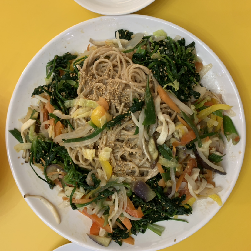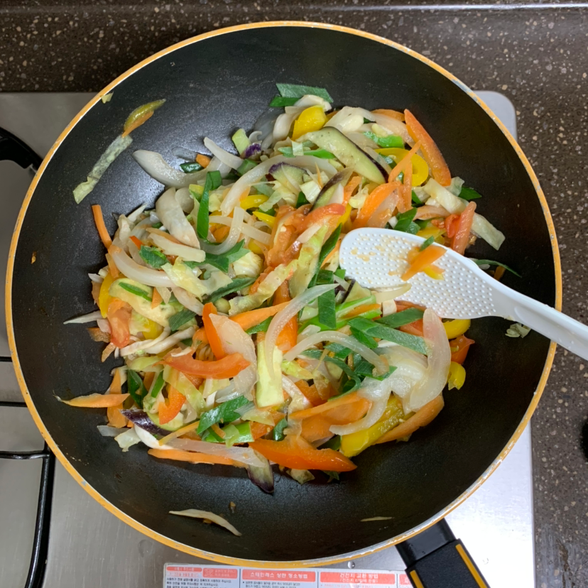 점심은 각종 야채와 통밀 파스타를 넣은 잡채다.