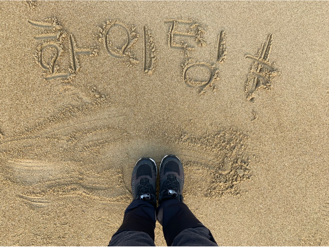 1990년대 인기가요를 들으면서 바다를 보며 걸으니 기분이 정말 좋다.