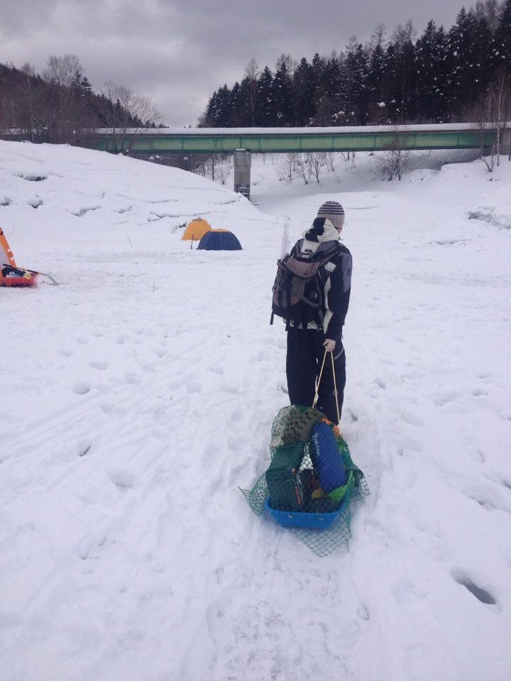 이번에도 부푼 기대를 안고 새벽부터 가쓰라자와 호수로 출발. 다들 이른 아침부터 삼삼오오 모여서 낚시 중이다. 홀로 낚시 족부터 가족, 친구, 연인들이 낚시를 즐긴다. 가쓰라자와 호수의 낚시장은 관리 낚시장으로 관리인이 상주하고 얼음구멍도 미리 다 뚫어져 있다. 작은 매점에서 낚싯대, 먹이, 낚싯바늘 등을 팔고 렌털용 텐트도 있어서 특별한 장비 없이도 가볍게 즐길 수 있다.