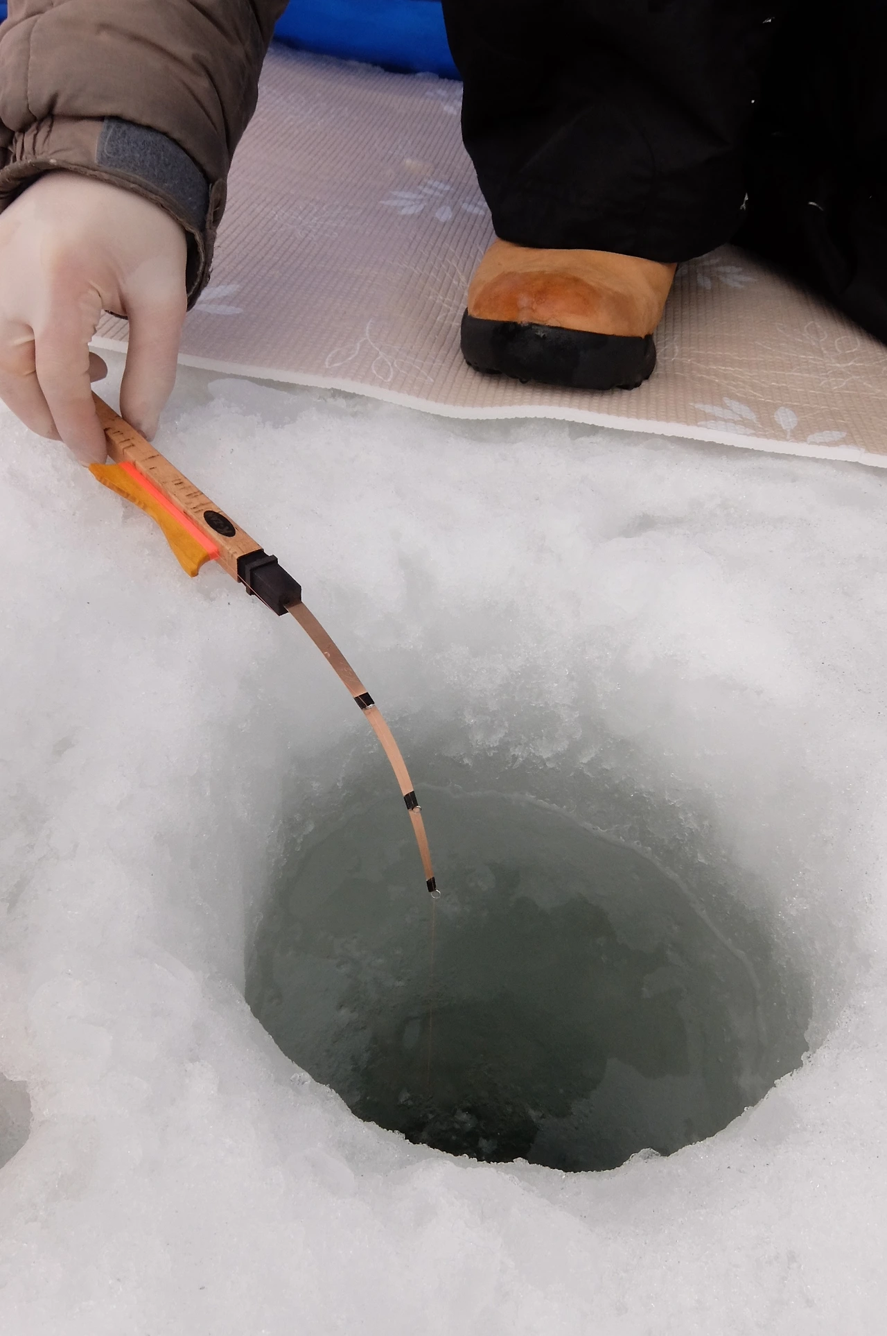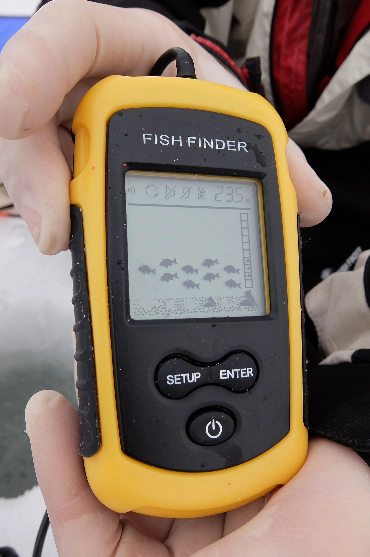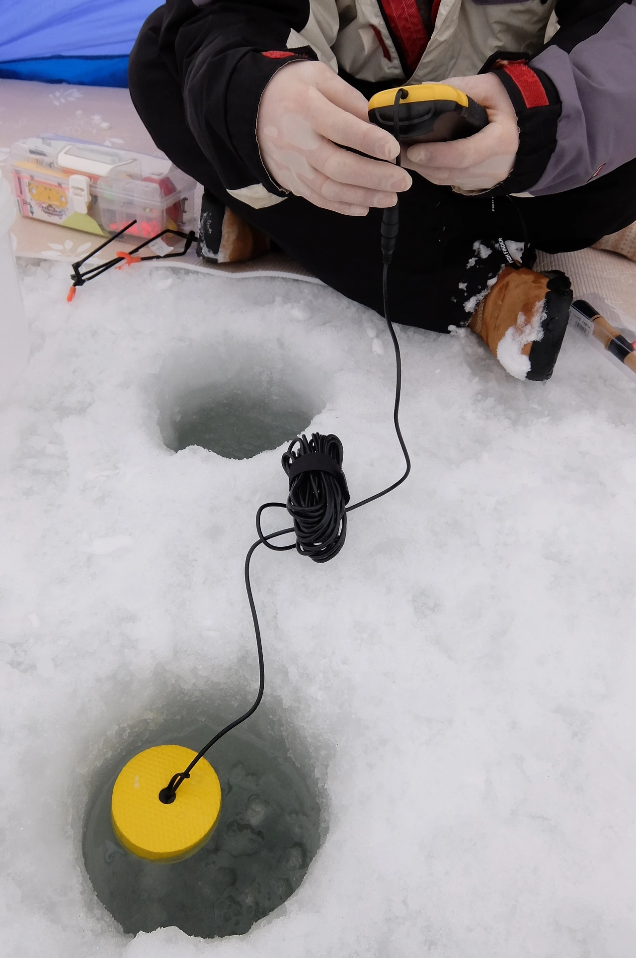 이제 낚싯대 좀 잡아볼까 하는데, 남편이 준비한 회심의 장비가 또 등장한다. 물고기 탐지기란다. 구멍을 세 개 뚫은 이유가 여기에 있었다. 탐지기 상으론 빙어들이 엄청 많은데?! 이거 오늘도 양손 무거워지는 거 아니야. 한껏 기대감이 부풀어 오른다. 회심의 장비 하이라이트는 빙어낚시 전용 낚싯대다. 무슨 장인인지 하는 사람이 고안했다나. 아주 미세한 움직임까지 잡아준단다.