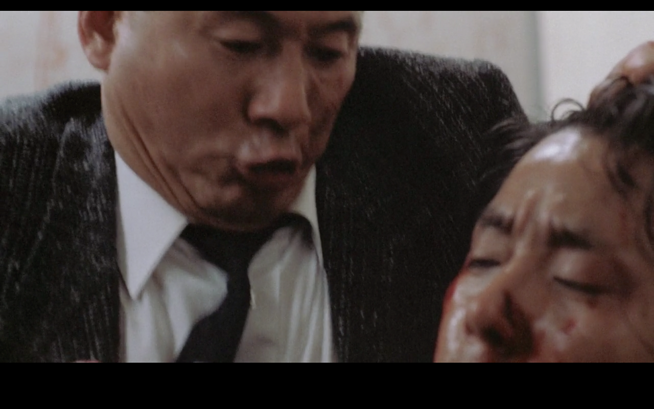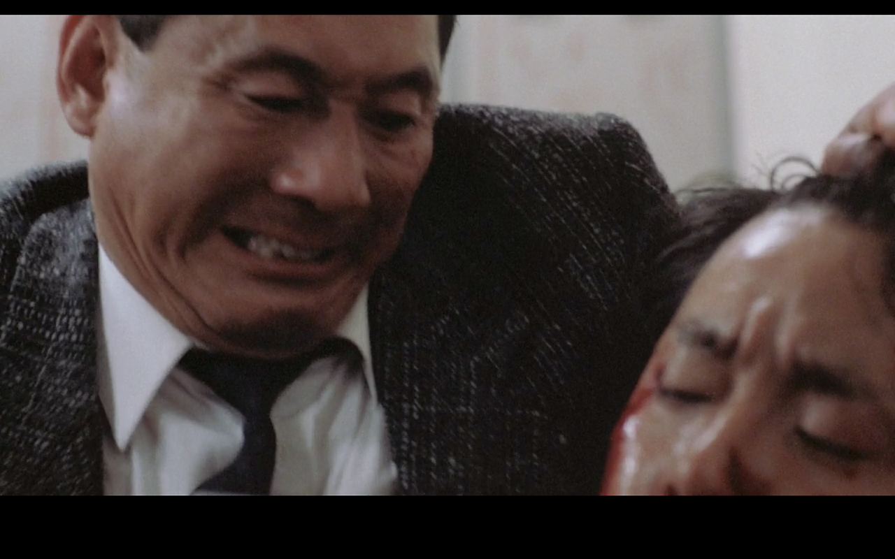 다음은 감정을 과잉으로 절제하는 것이다. 폭력을 사용하지 않을 때 아즈마는 대부분 무표정한 얼굴에 무미건조한 대화를 나눈다(이는 <소나티네>에서 무라카와가 오키나와에 있을 때를 비교해보면 극명한 차이가 있음을 알 수 있다). 이렇게 이해하면 어떨까. 외국인의 시각에서 일본인은 담백하고 미니멀한 태도를 추구하는 듯하다고 치자(소박한 일본식 정원, 정갈한 식문화, 오모테나시 등을 떠올렸을 때 느껴지는 무언가에 대한 것을 참고해보자). 그렇다면 그런 태도에서 일본인 특유의 미의식도 들여다볼 수 있을 것이다. 남성의 경우라면 다소 무뚝뚝할 줄 아는 것이, 여성의 경우라면 화가 나도 직접적으로 드러내기보다 겸양의 태도를 보여주는 것이 좋다고 할 수 있을 것 같다. 이렇게 일본인이 가지고 있는 추상적인 특질에 대해 동의할 수 있다면, 아즈마의 경우도 일본 남성의 마초적 미의식을 잘 구현하고 있다고 볼 수 있다. 다시 말해 아즈마에게 있어 문제시되는 것은 감정을 과잉으로 드러낼 때라고 말할 수 있다(감정을 억제하는 것은 언제든 과잉으로 드러낼 수 있는 가능태로 존재하는 것처럼 보인다). 그런즉 감정을 과잉으로 드러내지 않는 것은 오히려 전형적인 일본 남성 특유의 미의식을 잘 보여주는 것인지도 모르겠다.