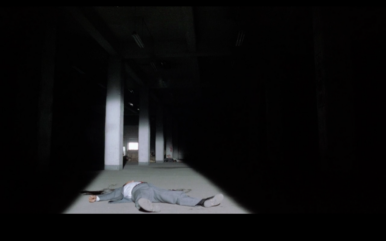 정상인이라면 내릴 수 있는 주체적 결정을 아카리는 올바르게 내리지 못한다. 그리하여 아카리는 불온한 욕망에 가득 찬 남성들에게 시도 때도 없이 대상화된다. 종반부에 가서 약물에 취한 채 키요히로 일당에게 강간을 당하게 되는 장면은 매우 불쾌하게 느껴진다. 이때 관객은 아즈마가 나타나서 뭔가 해결해주기를 기대하게 된다. 아즈마를 보자니 개인적인 '목표'와 더불어 여동생을 구하러 가는 구원의 주체로서의 역할까지 기대하게 한다. 마치 영화 <아저씨>처럼 말이다. 그러나 이 영화에서는 어느 것 하나 제대로 이루지 못한다는 점에서 관객에게 씁쓸함과 비감(悲感)을 느끼게 한다. 특히 정신을 차리지 못하고 계속해서 약을 찾는 아카리를 아즈마의 손으로 결딴을 낼 때 그렇다. 이때 카메라의 시점은 이 전체 사건을 관망하는 관객의 시선과 같다. 당신은 이를 어떻게 생각하냐는 듯이 멀찍이 떨어져서 사건 현장을 보게 하는 것이다. 필자에게 한 발의 총성은 이렇게 들린다. 어떤 기대도 희망도 없으니 차라리 그만하자고. 그렇게 사건 현장을 터덜터덜 걸어나가는 아즈마의 마음은 이제 완전히 텅 빈 것과 마찬가지다. 뒤늦게 온 니토의 부하는 아즈마의 머리를 쏘아버림으로써 그의 기억까지 터뜨려버린다. 차라리 잘 된 걸까. 아즈마에게 있어서 말이다.