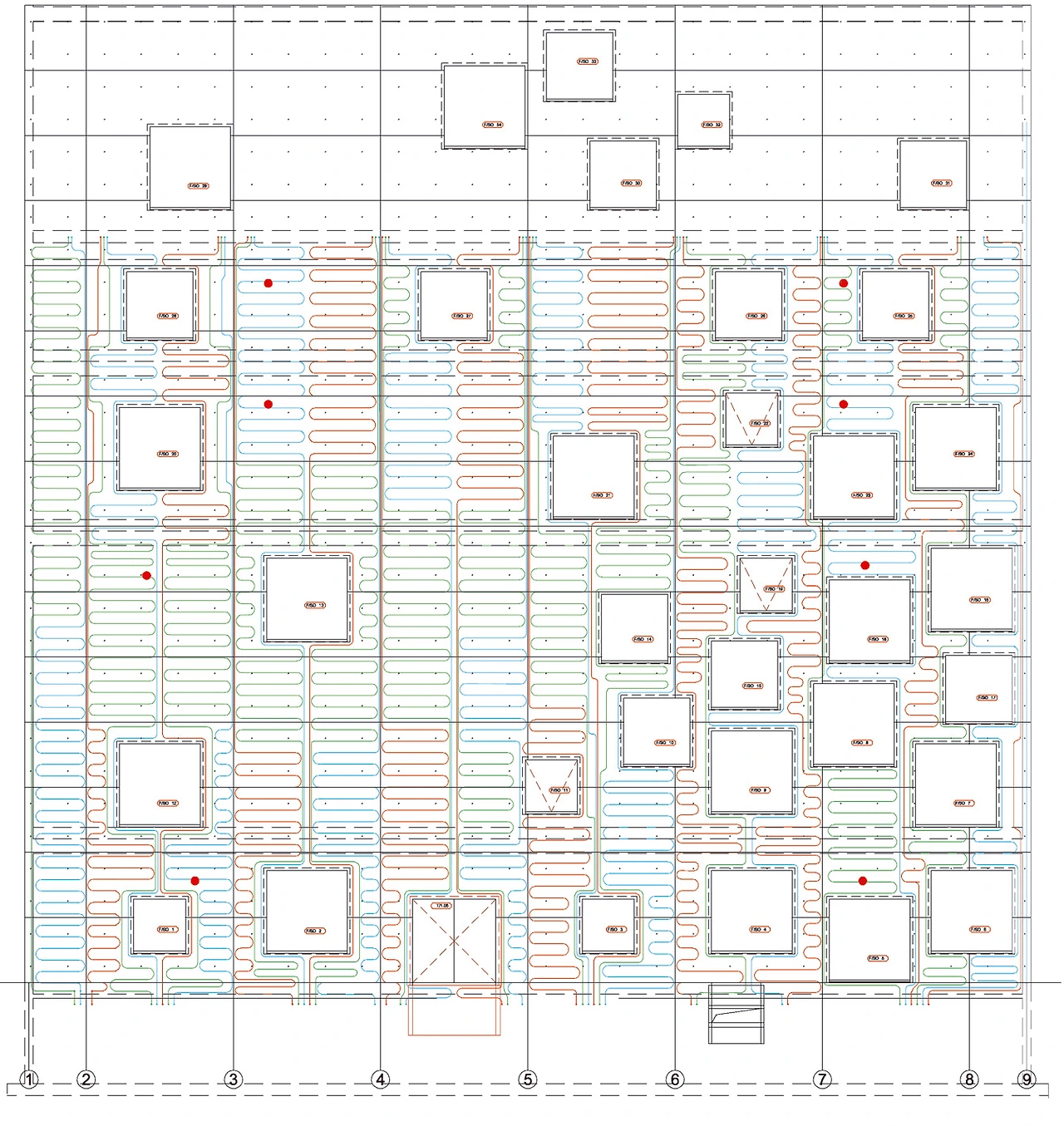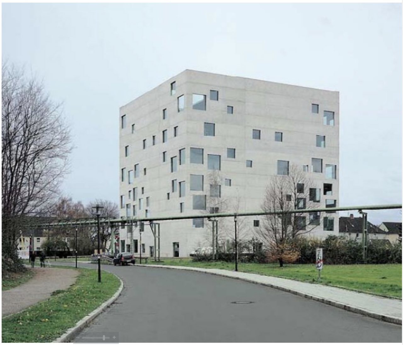 이 건축물은 주변에 지어진 콘크리트 건물치고 외벽 두께가 얇습니다. 정확히 말하면 약 30센치미터인데, 언뜻 들으면 뭐 종잇장처럼 얇지도 않은데 뭐가 얇냐고 되물을 수도 있겠습니다. 하지만 5층짜리 건물에다 연평균 기온이 10도가 되지않는 추운날씨를 고려하면 벽이 꽤 두툼해야 합니다. 독일같은 나라는 특히 환경 친화적 에너지 사용을 위한 단열성 등등에 대한 제한사항이 많습니다. 그 모든 요건을 충족시키려면 50센치에 육박하는 콘크리트 벽이 필요했다고 합니다. 하지만 지어진 건물의 벽 두께는 그 절반가량인 30센치에 불과한데, 이게 지하 온수 덕분에 가능했습니다.