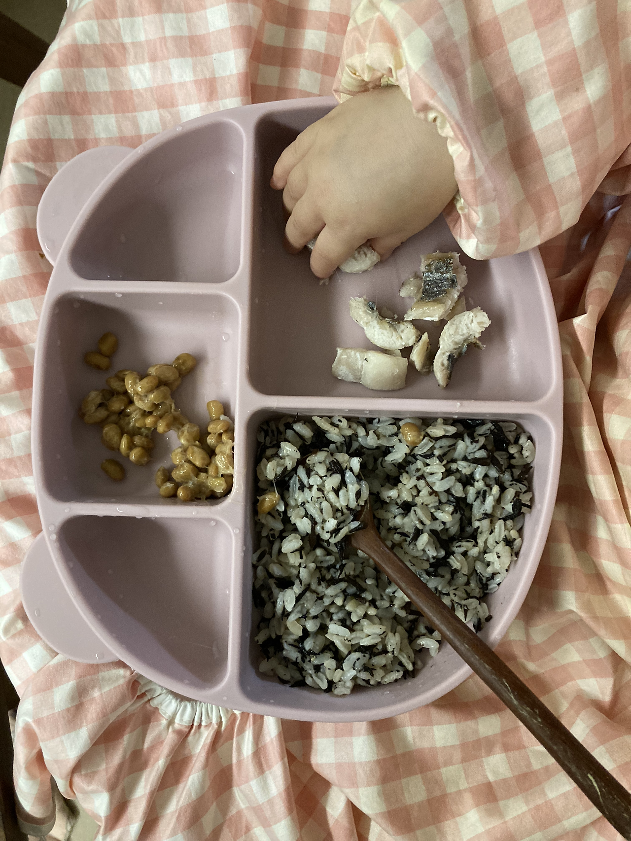 게다가 우리 아이의 경우 이가 좀 천천히 나는지 돌리 지난 지금에야 아랫니가 나기 시작했다. 이전에는 적당히 잇몸으로 으깨 먹긴 하지만 딱딱하거나 질긴 음식은 먹기 힘들어했다. 그래서 처음 시도하는 음식의 경우 가능하면 부드럽게 먹을 수 있는 것으로 시도했다. 부드러운 콩밥도 좋아하고 생나또도 잘 먹는다. (여기서 불가사의는 옥수수다. 옥수수는 비교적 단단한데 매우 좋아한다)