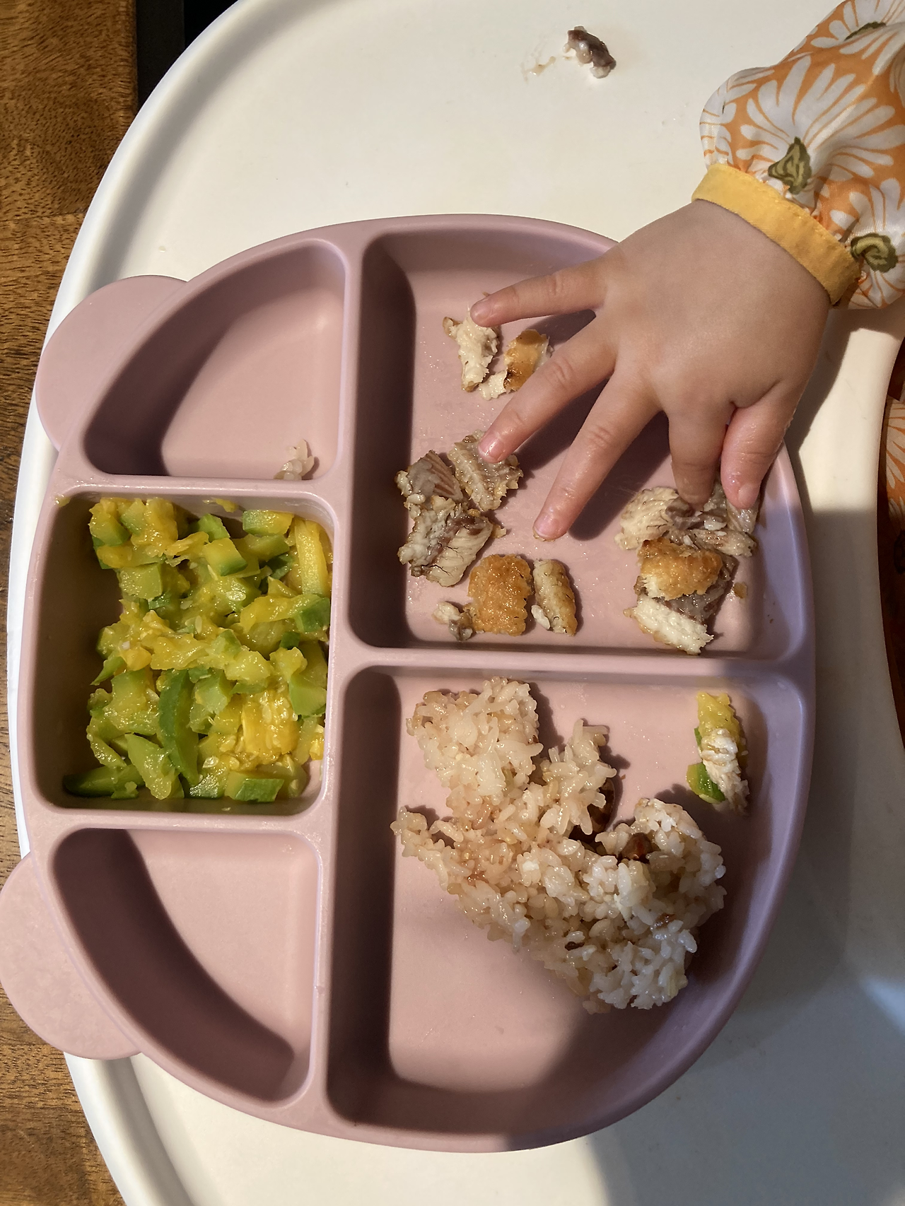 처음 아이주도 이유식을 시도하면 바닥에 흥건히 떨어진 음식들을 보며 한숨이 절로 나온다. 청소가 많은 이유는 당연한데, 아이가 음식을 집어서 입에 가져가기까지 익숙하지 않거나 음식을 그저 촉감놀이 하듯 장난치고 던지며 놀기 때문이다.
