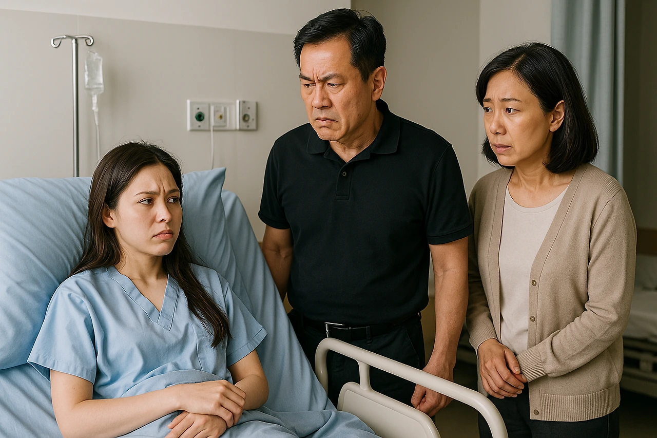 전화 통화를 마치고 병실로 돌아가니 여전히 부모님이