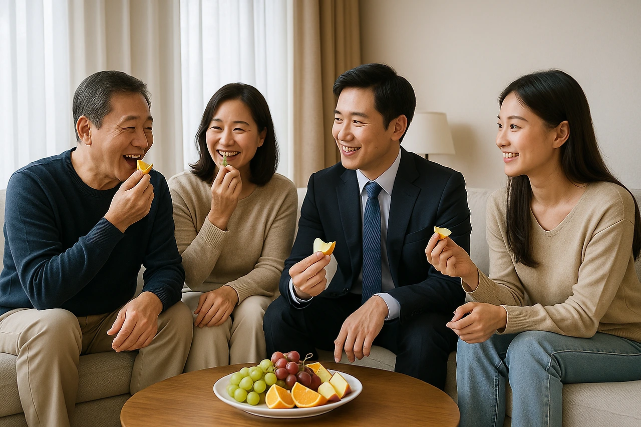 식사를 마치고 과일을 나눠 먹던 중,
