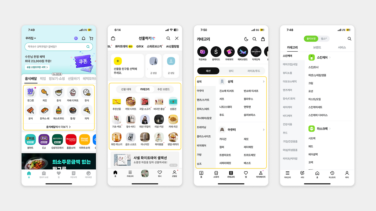 커머스, OTT, 모빌리티 등 다양한 플랫폼들은 비슷한 화면 구성을 공유함