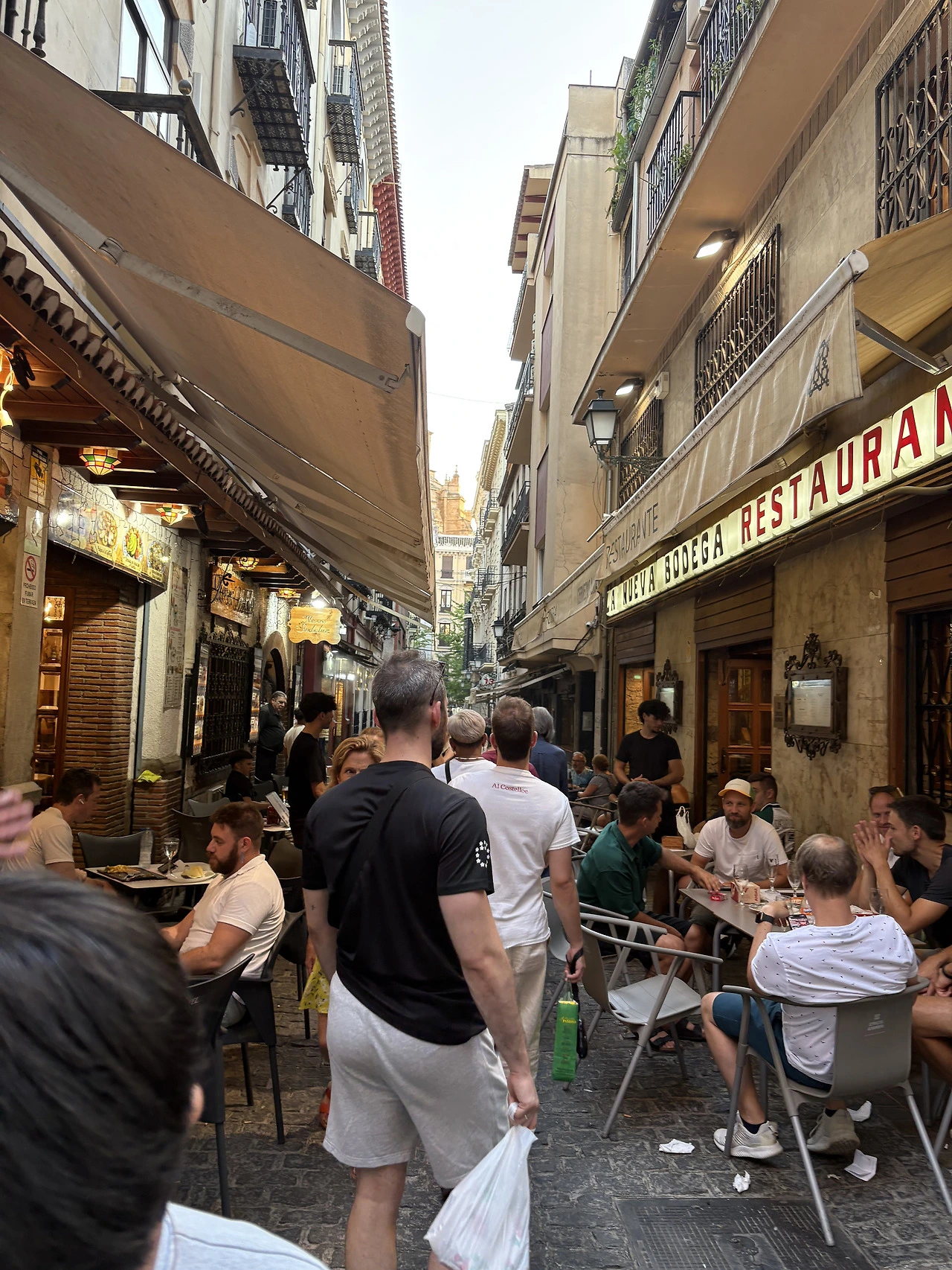 그라나다는 ‘타파스 무료‘ 문화가 여전히 남아 있어서, 음료를 1인당 하나만 시키면 타파스를 공짜로 제공받을 수 있다. 솔직히 바르셀로나에서 말라가로 넘어왔을 때도 음식가격 부담이 줄어서 아~ 싸다! 했었지만, 그라나다에 들어서는 순간 와!!!! 하는 탄성이 절로 나왔다. 가이드 왈, 그라나다에서는 그래서 주민들도 음식 하기 싫으면 나와서 술 한잔 하며 저녁을 해결을 많이 하는 편이라고 한다. 그렇다고 술이 비싼가? 전혀~ 이곳이 내가 살 천국이구나! 저녁은 한잔으로 마무리하고, 요리도 하지 않고!!