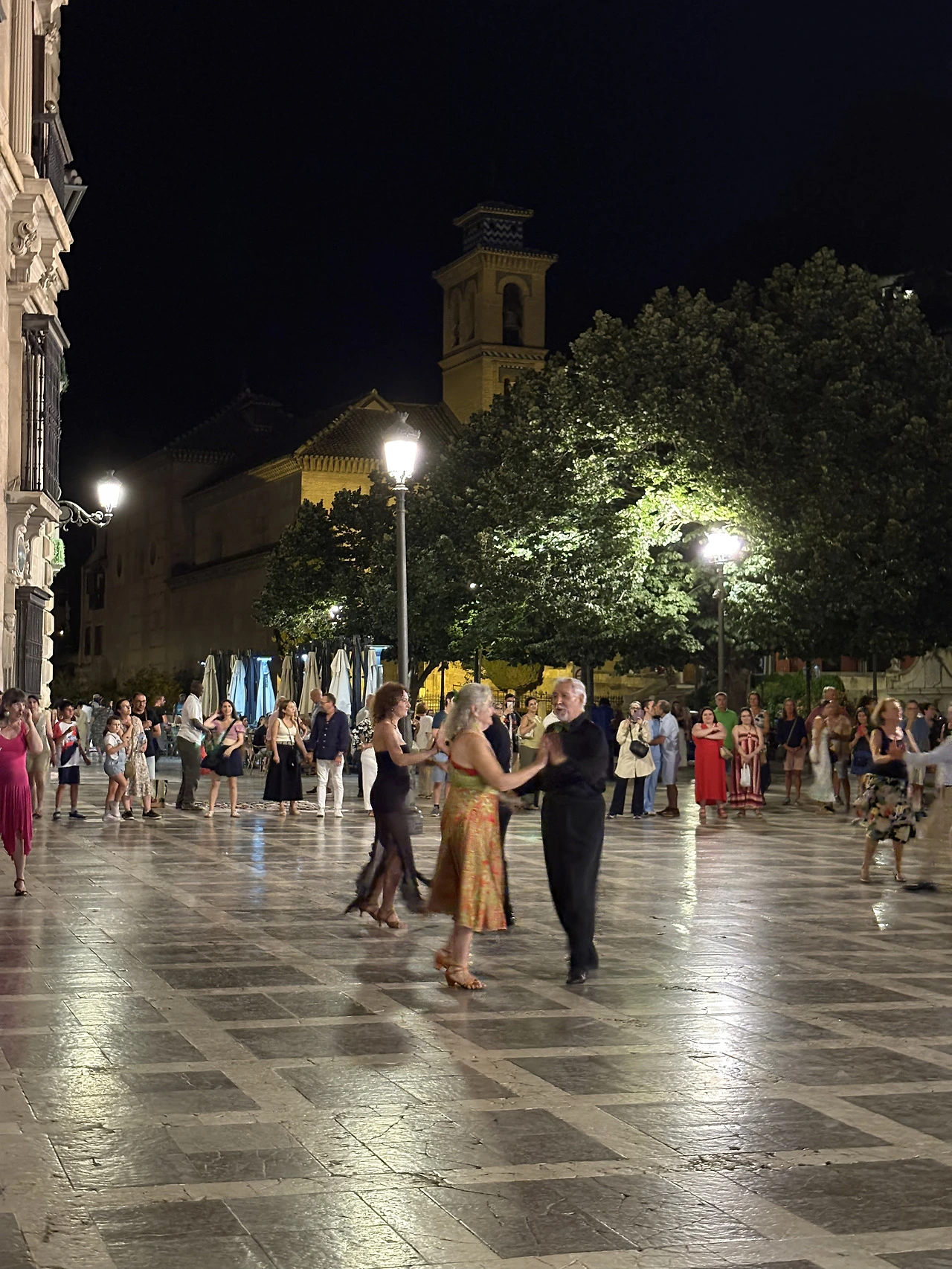 스페인에서는 해가 9시가 되어야 뉘엿 넘어갔기에, 밤 10시면 모임을 하기 딱 적절한 시간… 야경투어를 끝내고 숙소로 돌아가는 길 광장에 구경꾼들이 모여있다. 지역 시니어 댄서들의 공연, 공연 모금함 없이 정말 즐기러 나온 어르신들이 한껏 뽐낸 복장으로 리듬을 타고 있다. 구경하던 관광객들 중 일부는 가장자리에서 댄스를 따라 하기도 한다. 파트너를 변경하며 스탭도 엉키고 턴에서 실수도 있었지만, 웃음과 윙크로 양해를 구하는 댄서들의 어설픔이 광장을 풍요롭게 만들어주었다.