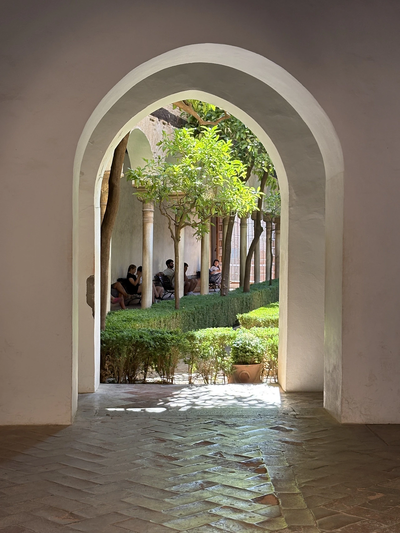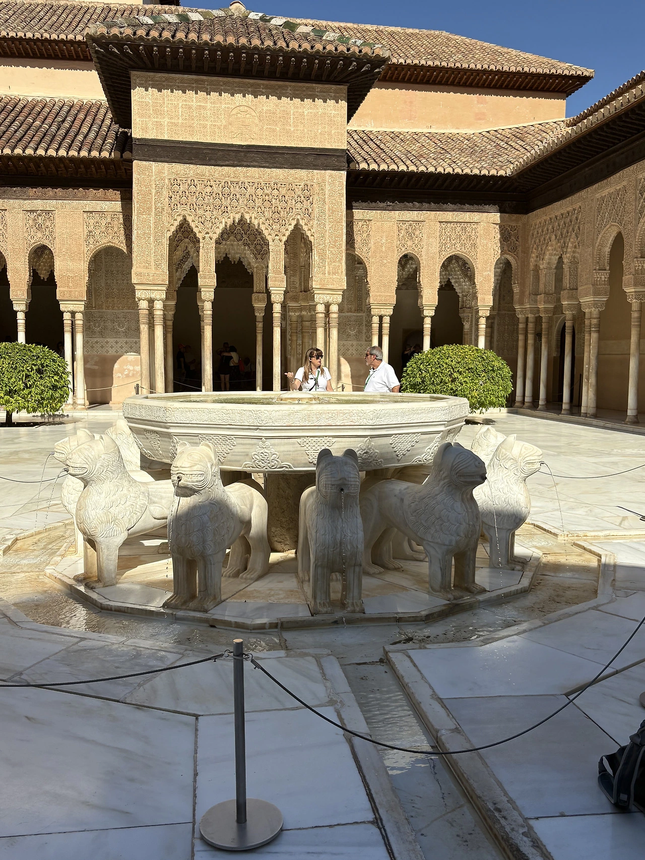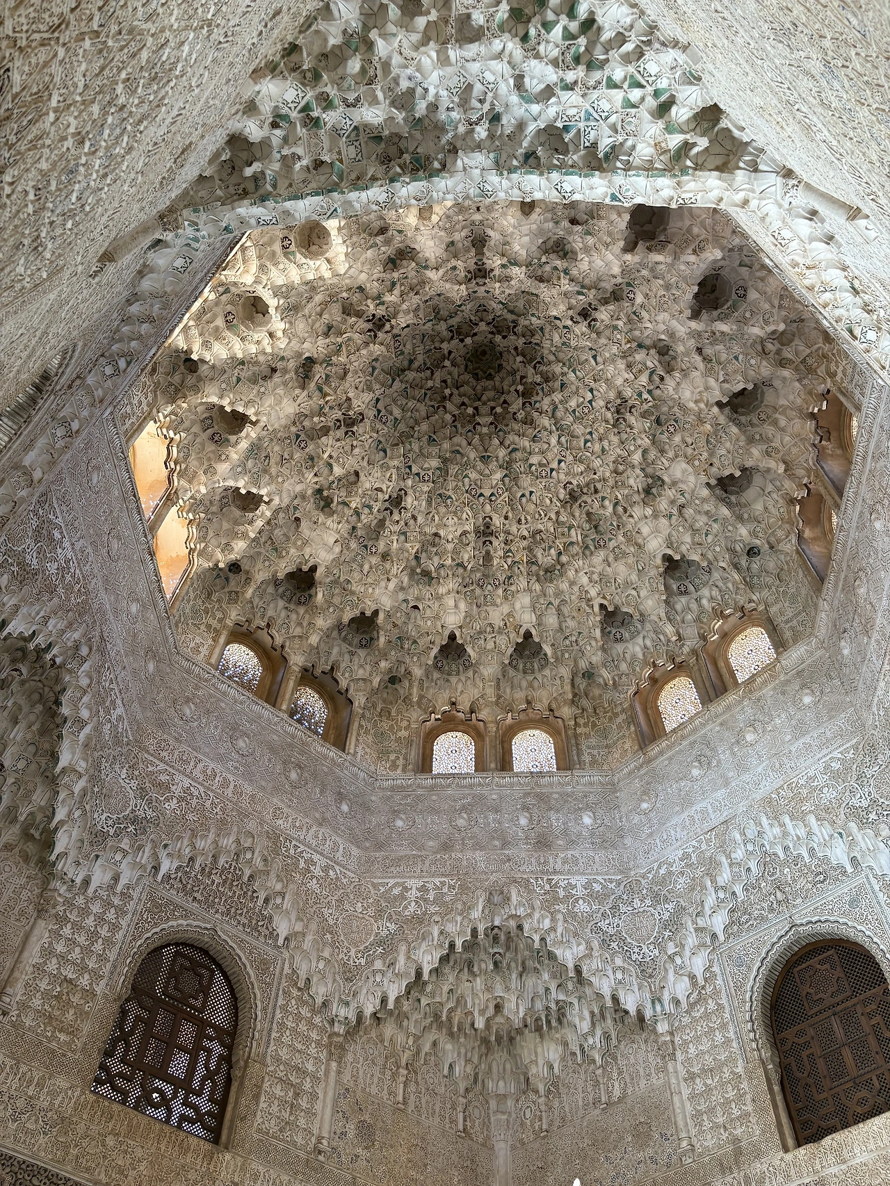 웬만한 유명장소는 가이드투어를 진행했는데 알함브라 궁전은 마지막까지 고민하다 가이드 투어를 선택하지 않았다. 워낙 유명한 곳이니 방마다 챗 지피티의 도움을 받아 설명을 듣기도 쉬웠고 우리 가족의 관심도에 따라 어느 곳은 여유 있게 어떤 곳은 빠르게 지나갔다. 가이드 투어를 오신 분들은 가이드를 따라가며 설명을 듣기에 여념이 없었지만, 우리는 중간중간 놓여있는 의자에 앉아 천장에 그려진 패턴을 올려다보고, 챗지피티의 설명에 따라 어디가 대칭점인지도 찾아보곤 했다. 여유가 있으신 분들은 가만히 앉아 온방을 이루는 전체 디자인을 찬찬히 둘러보고 느껴보시기를 권유드린다. 그리고 한국 단체 관광객들이 워낙 많다 보니 지나가는 중간중간 의도하진 않았지만 짧은 귀동냥도 가능하다. 물론 가이드가 없다 보니 동선을 잘 못 잡아 길을 엄청 돌아다닌 단점도 있으니 각자가 중요하게 생각하는 포인트를 고려해서 신중하게 선택하시기를…. (저는 길을 몇 번 헤매는 바람에 아이들의 항의를 많이 받았어요ㅎ)