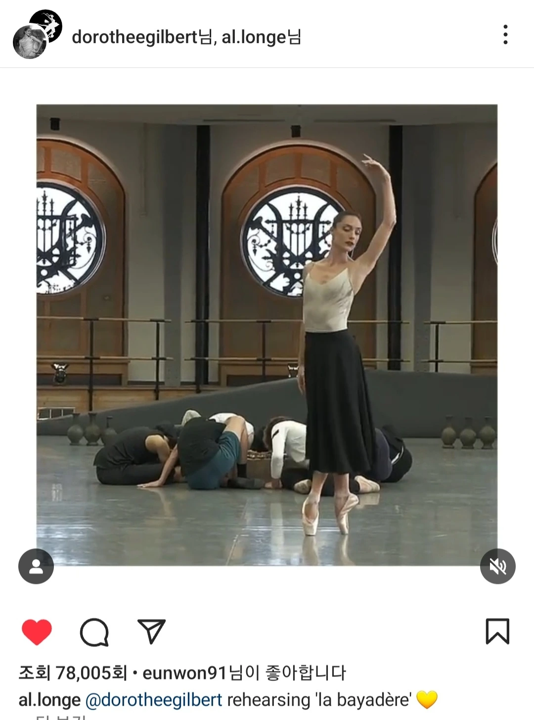 파리오페라발레단 도로테 질베르의 이 사진 보고 샀음을 고백한다, 쥐스따 스완. 출처 Dorothee Gilbert Instagram