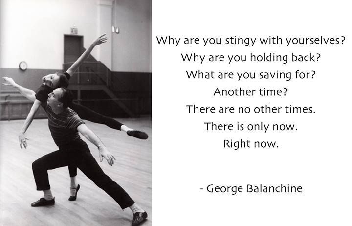 미국 발레의 아버지 격인 조지 발란신의 명언. "뭘 그리 아껴? 다음에 한다고? 다음은 없어. 지금만 있어"라는 요지.