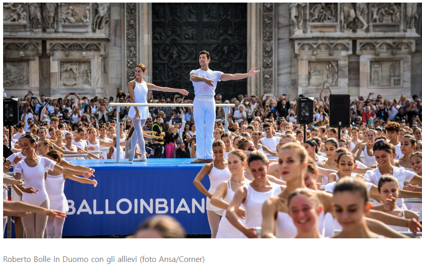 지난달 10일 이탈리아 밀라노의 두오모 광장. 순백의 레오타드를 차려입은 약 2300명의 소녀소년이 모여들었다. 중세 1368년에 건립의 첫 삽을 뜬 두오모 성당의 135개 뾰족한 첨탑이 내려다보는 가운데, 광장을 가득 채운 소녀소년들이 환호성을 질렀다. 이 행사를 기획한 주인공이자, 현존하는 최고 발레 남자 무용수 중 한 명인 로베르토 볼레가 나타나면서다. 볼레는 환한 미소와 함께 손을 흔들며 인사를 한 뒤 말했다. "자, 시작합시다, 오늘의 발레 클래스."