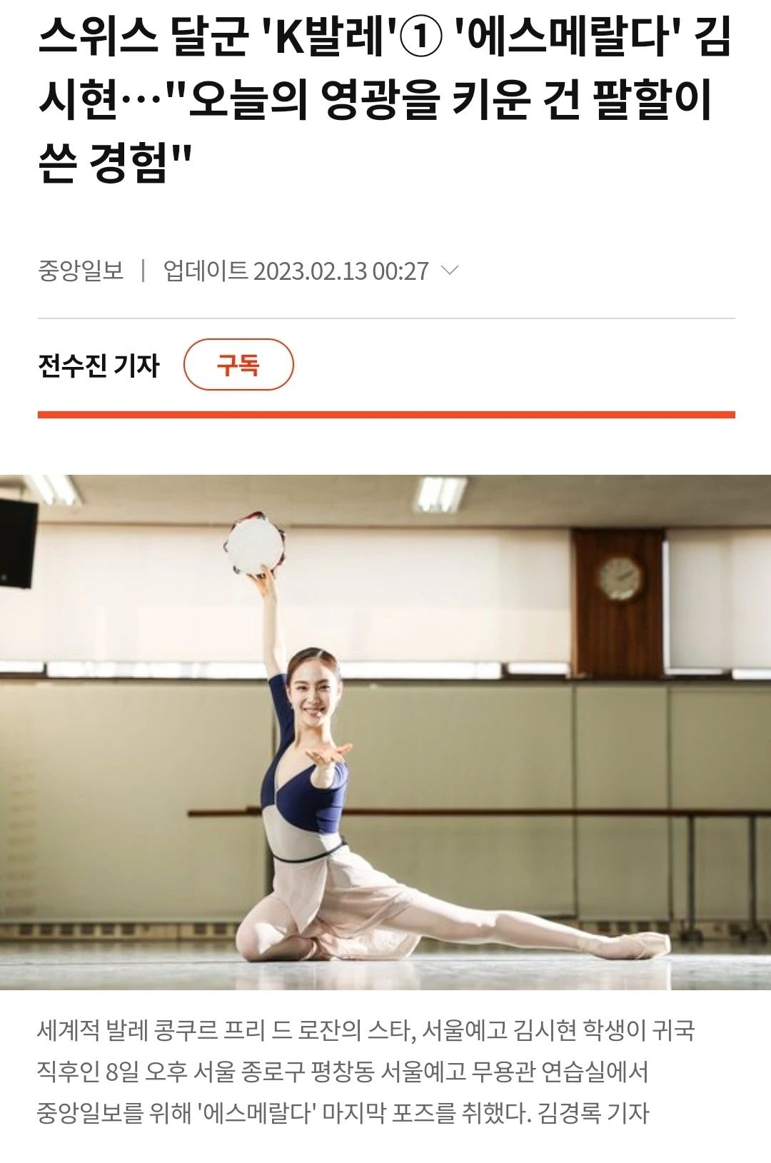그러면서 꺼내본다. 지난해 로잔 콩쿠르에서 멋진 에스메랄다 무대를 펼치며 5위 입상과 인기상(관객 선정)을 양손에 거머쥔 김시현 학생과의 인터뷰. 생업이 기자라서 좋은 것도, 나쁜 것도 많지만 (세상 모든 일이 그러하듯), 매년 로잔 관련 인터뷰를 할 수 있는 건 엄청난 행복이자 영광이다.