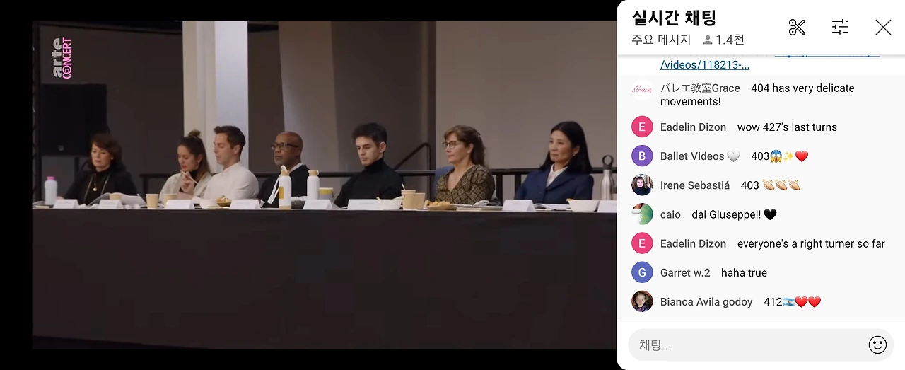 Prix de Lausanne 실시간 영상 캡쳐. 맨 오른쪽이 강수진 국립발레단장.
