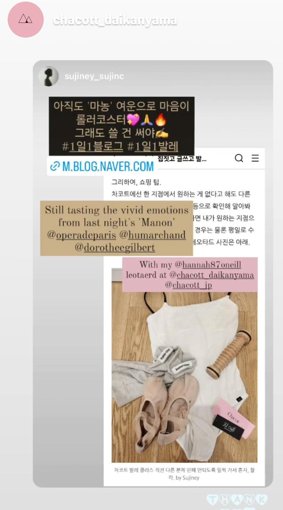 차코트 다이칸야마 본점의 인스타그램에서 라이브로 중계해준 그의 Dance Magazine 인터뷰에선 이런 말도 했다. 공연 전 루틴이 있느냐는 질문에 대한 답.
