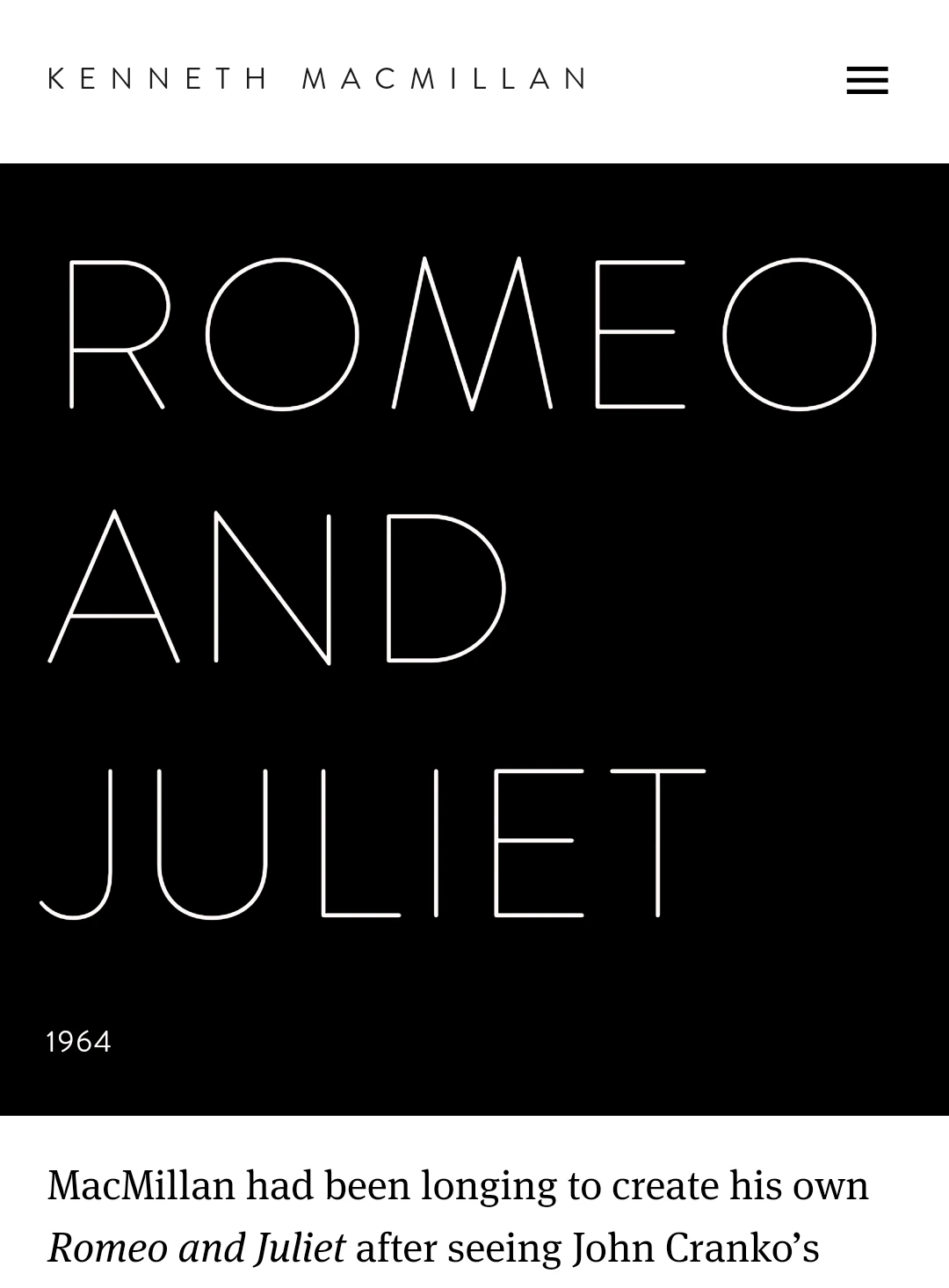 케네스 맥밀란 경 재단의 '로미오와 줄리엣' 설명.