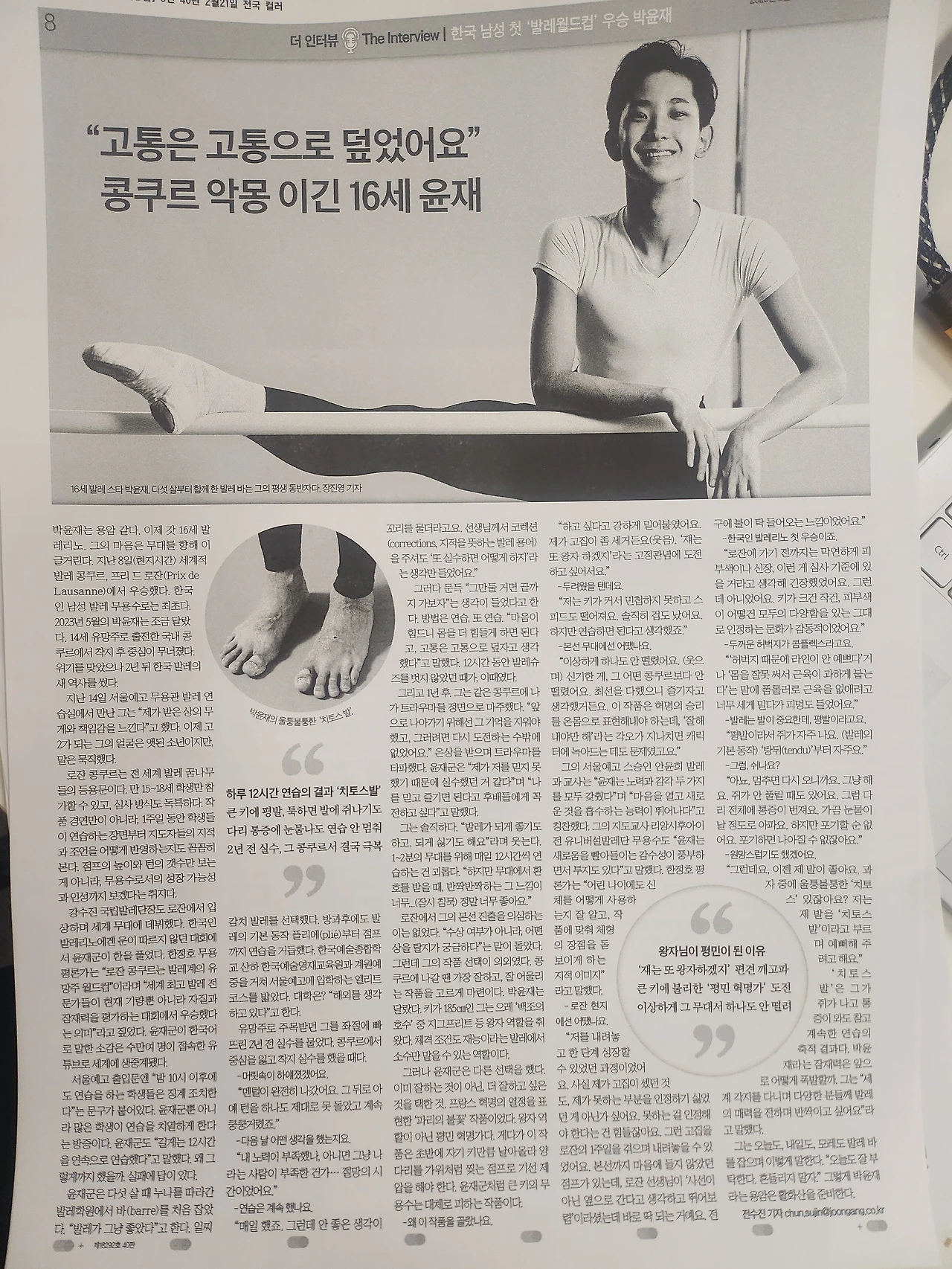 골프도 축구도 클라이밍에도, 삶의 지혜는 녹아있겠지. 하지만 발레를 우연으로 시작해 필연으로 삼은 나로선, 발레만 한 게 없는 듯. 김기민 무용수의 #발레명언 글을 쓴 후, 그의 '해적' 알리 배리에이션 영상을 봤는데, 그중 마네쥬 스팟을 보고 떠올린 바가 있다. 올해 프리 드 로잔 발레 콩쿠르 우승자의 인터뷰에서도 느꼈던 것.