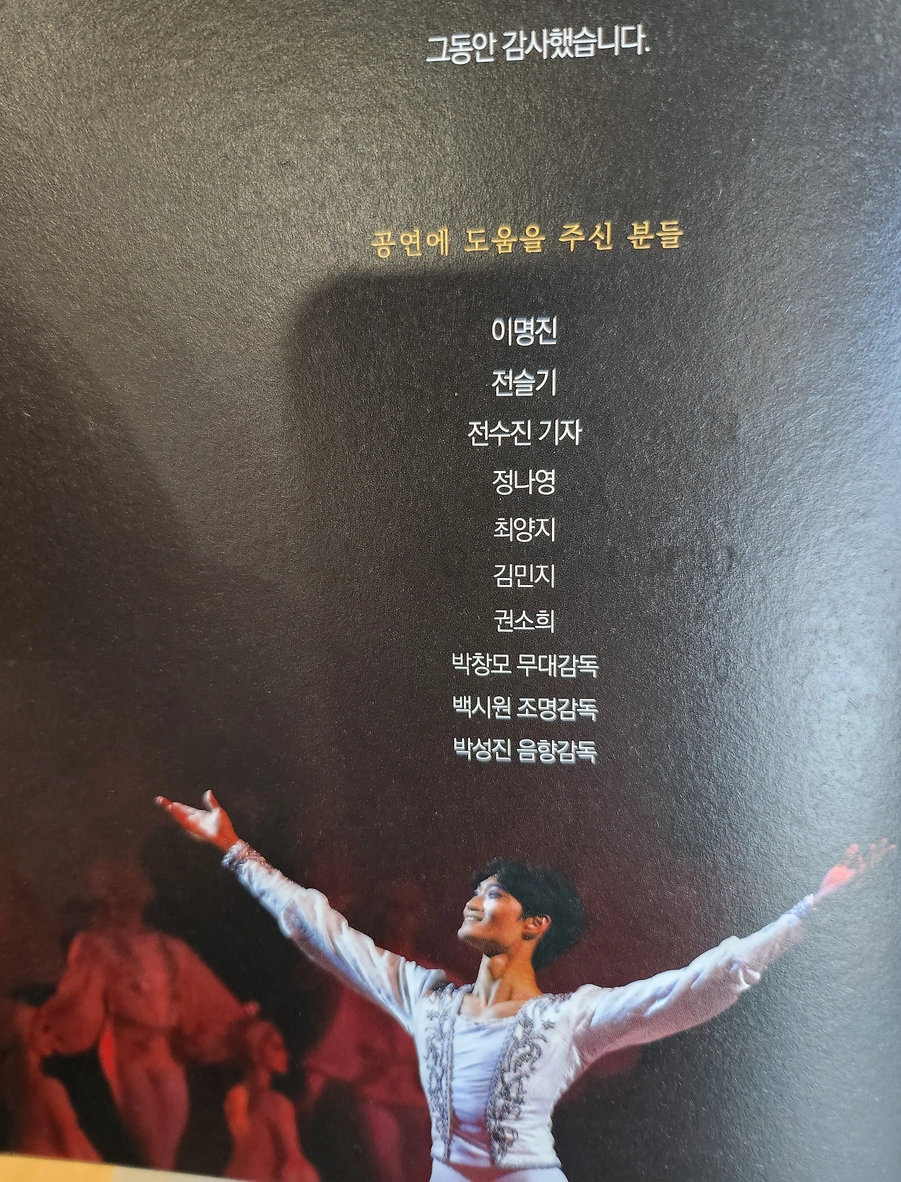 잠깐, 그런데 무대 옆? 맞다, 옆. '발레 슈프림 2024' 프로그램북 제작을 프로보노, 즉 보수를 받지 않고 해드렸기에 대표님이 공연 전 회차를, 때론 객석에서 때론 스테이지 옆 윙(wing)공간에서 볼 수 있도록 배려해 주셨다. 파글리에로, 아니, 타티아나의 숨소리 하나, 드레스의 오간자 자락이 끌리는 사각 소리까지, 생생히 기억한다.