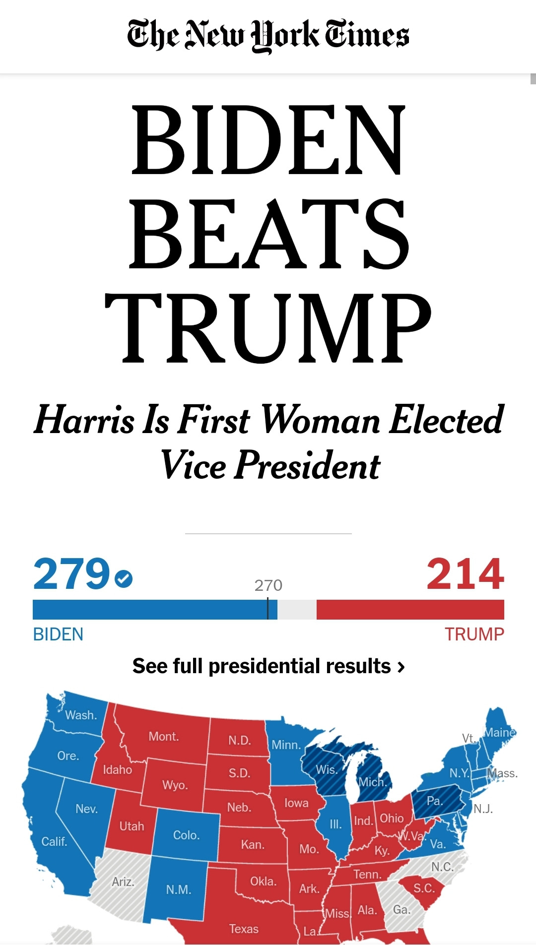 "트럼프 대통령에게 투표했던 분들에겐 이렇게 말하고 싶습니다. 오늘 밤 당신이 얼마나 실망했는지 나는 잘 압니다.