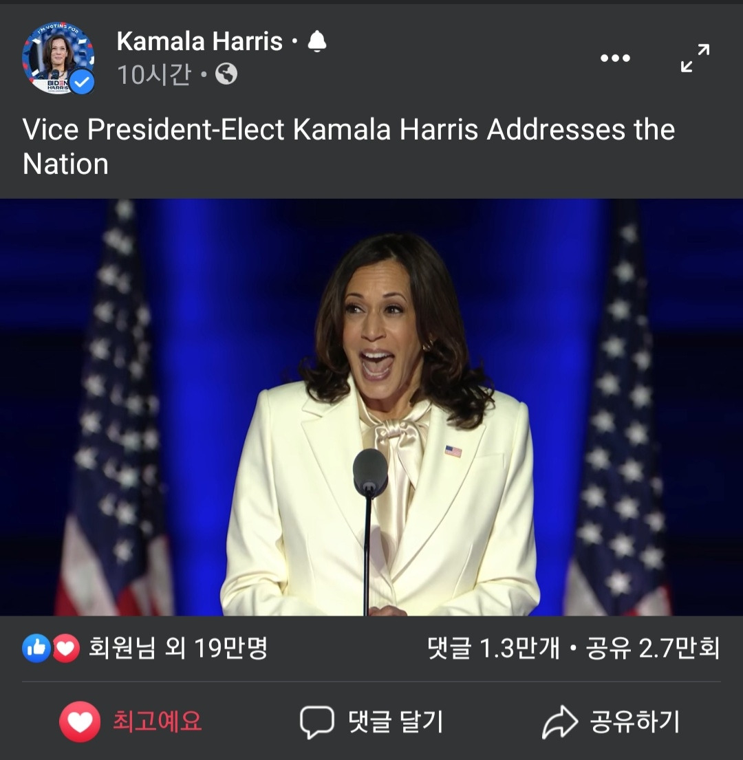 카말라 해리스 부통령 당선인 페이스북 캡쳐♡♡♡