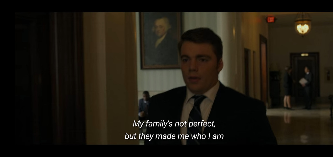 넷플릭스 캡처. 남주가 "내 가족은 완벽하진 않지만 오늘의 나를 만들어준 존재야"라고 말하는 장면.