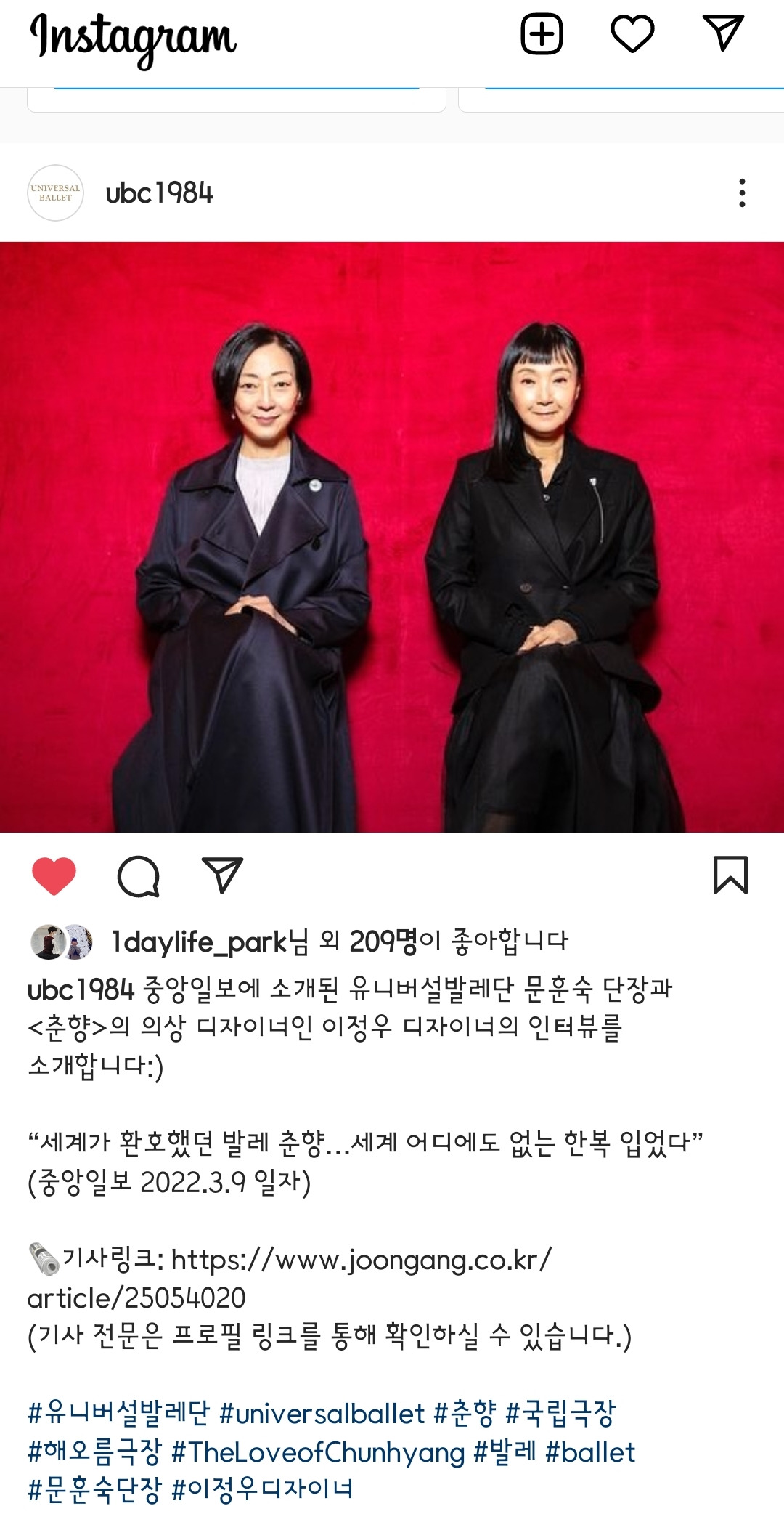 유니버설발레단 공식 인스타 계정에서 공유해준 my 기사♡ 감사합니다♡