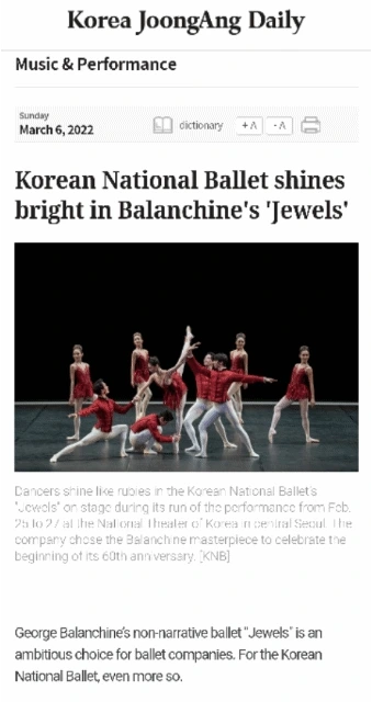 지난달 말 코리아중앙데일리에 쓴 국립발레단 '주얼스' 리뷰 캡처.