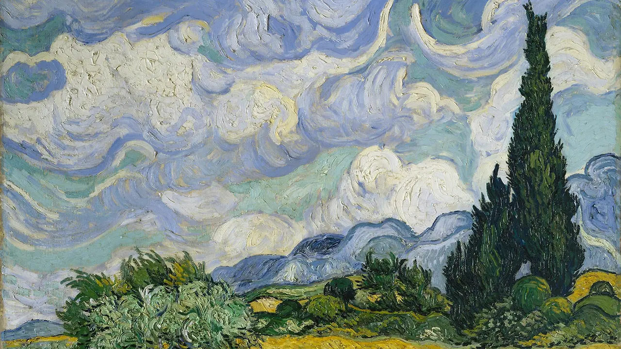 이 시기의 고흐는 우울증과 신경 쇠약 증세로 인해 남부 프랑스의 생 레미(요양원이자 수도원)에 입원해 있으면서도 활발한 작품 활동을 했다. 이 작품에서는 밝은 풍경 속에 서있는 죽음을 상징하는 삼나무가 특히 인상적이다(그는 우리가 흔히 아는 천재성과는 다르게 작품의 목적이나 기능적 측면에 있어 꽤나 의식적이고 의도적인 설정을 하며 그림을 그렸다고 하니, 그도 노력하는 천재였던 셈이다).