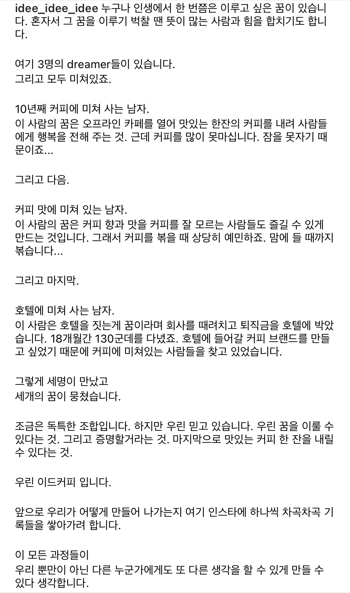 앞으로 브랜드가 어떤 브랜드가 되고 싶은건지, 어떤 꿈을 가지고 있는건지, 허무맹랑하다고 생각하지 마시고 큰 꿈을 꾸고 그걸 고객에게 나눠보세요. 브랜드의 꿈 이야기를 듣고 가슴이 뛰는 고객이 분명 있습니다. 브랜드를 응원하게 되는 마음으로 말이죠. 그거면 성공한거겠죠?