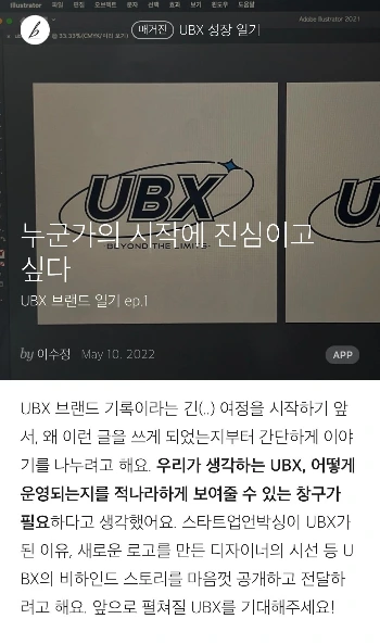 회의를 하면서 나온 프로젝트 이야기도 좋습니다. 어떤 프로젝트를 앞으로 할 것인지 궁금증과 기대감을 유발하는 중요한 포인트입니다. UBX(스타트업언박싱)는 2022년 상반기에 진행되었던 워크숍 스케치 영상을 만들어 유튜브에 올렸습니다. 유튜브 플랫폼이 메인이 아니라 구독자나 조회수는 낮지만, 실제 존재하는 팀이고 우리가 어떤 방향성을 가지고 앞으로를 준비하는지를 보여주는 좋은 사례입니다.