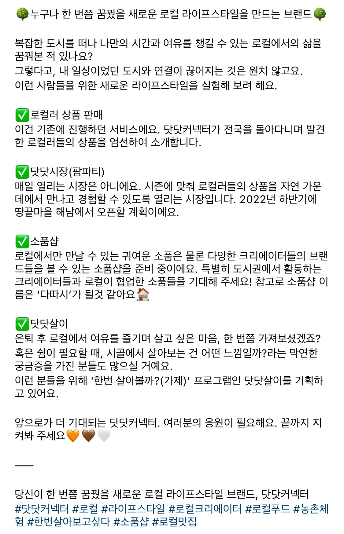 처음부터 거창하게 쓸 필요는 없습니다. 운영하는 브랜드 sns에 짧은 글이라도 좋으니, 작성해 보세요. 참고로 해외 스타트업 발굴하는 디깅프로젝트 5기 멤버들은 2주간 브랜드 스토리를 sns에 올리는 미션을 진행했답니다.