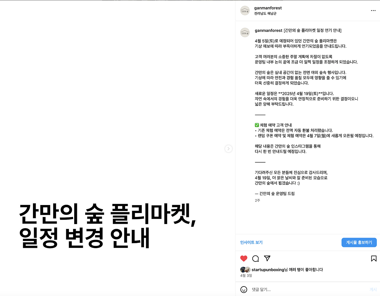 원래는 4월 5일 식목일에 맞춰 플리마켓을 열려고 했다. 그런데 너무나도 확실한 비소식이 있었고, 결국 2주를 연기했다. 그 과정도 굉장히 괴로웠다. 다채롭게 구성되었던 브랜드들이 대거 이탈하게 된 것이다. 하지만 우리는 결국 해냈고, 좋은 콘텐츠로 플리마켓을 무사히 마무리할 수 있었다.