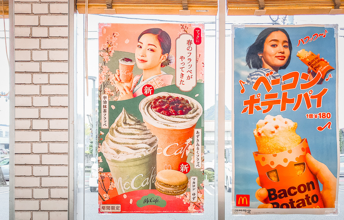 그렇게 한참을 달렸다. 이정표에 기준이 되어주는 다케오 온천역 방향으로 꽤 달려 멈춰 선 곳이 맥도날드였다. '아사맥 朝(あさ)マク'만 맥이 아니었다. 비를 쫄딱 맞고 생쥐가 된, 물론 모자가 있어서 걱정보다는 덜 젖었지만 옷가지는 많이 젖었다. 비 내리는 어느 늦은 봄날, 우산도 없이 찾아든 낯선 여행자의 방문에 잠시 집중되었던 눈길. 현지인들 몇 분이 식사 중인 맥도날드에, 그와 중에 자전거는 자전거 주차 공간에 잘 두어야 했기에 비를 더 맞았다.