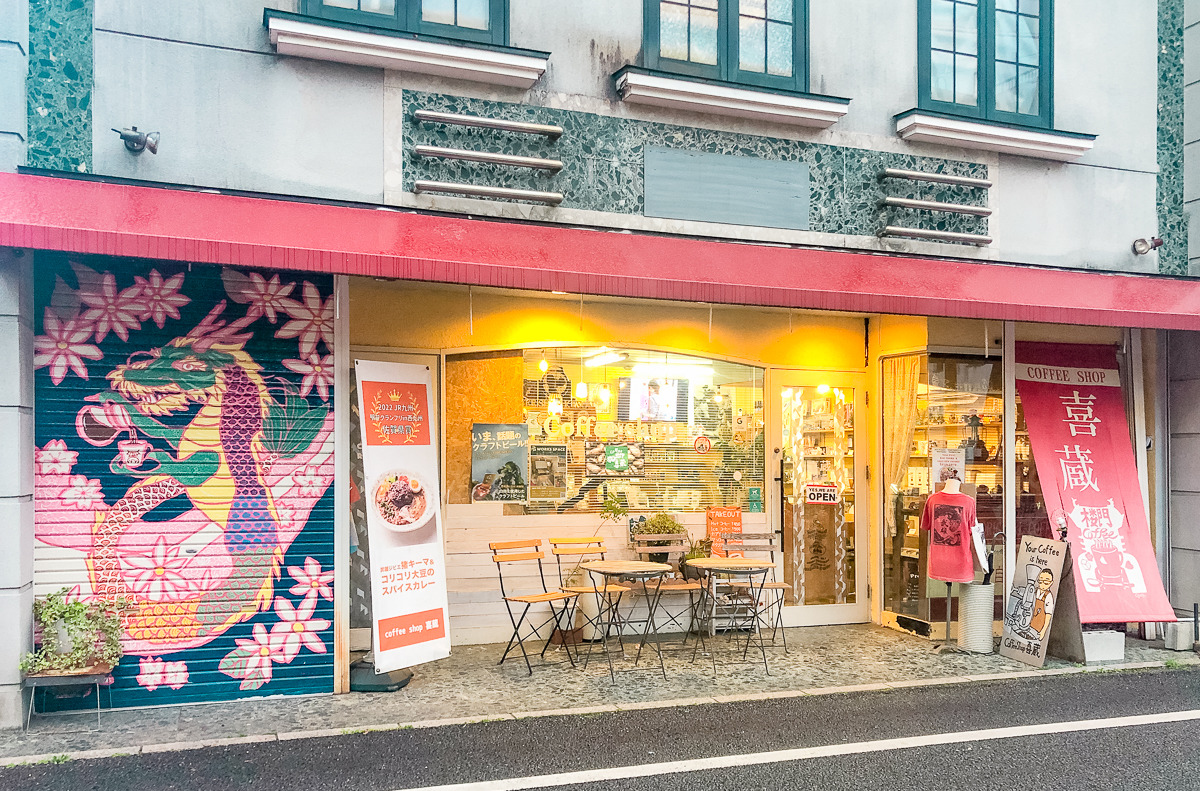 아침에 일어나니, 커피 한잔이 마시고 싶어 진다. 주섬주섬 옷을 입고 료칸 인근 동네 카페로, 전날 이미 봐둔 곳이기도 하고. 머무는 료칸에서 1분도 채 되지 않는 거리다. 카레와 커피, 사이즈는 하프, 노멀, 라지 중에서 하프로 주문했다.