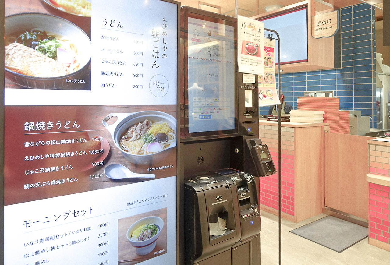 구) 마쓰야마역을 지나 깔끔하게 단장한 신) 마쓰야먀역 안으로 들어가 티켓을 교환 수령했다. 한창 철거 작업이 진행 중이다. 새로운 마쓰야마역은 목재 구조로 에히메현의 특산품과 지역 요리를 맛볼 수 있는 상업시설인 단단도리(だんだん通り)가 자리하고 있다. 그중 눈에 띈 푸드코트, 에히메시야.