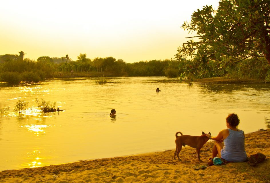 제임스와의 이야기는 예상하지 않았던 '여행'과 '독서'라는 주제로 흘러가고 있었다. 동남아시아를 여행하면서 제임스가 찾은 삶의 철학이 궁금하지는 않았지만 듣다 보니 나도 모르게 동요되고 있었다. 자리를 옮겨 조금 더 시간을 보내기로 했다. 인근에 머무는 여행자들끼리만 찾는 시크릿 스폿이 있다며 나를 이끌었다. 경사진 언덕을 조금 내려가니 멋진 돈뎃 섬의 풍경을 담고 있는 강가가 나타났다. 어린아이들은 어머니를 따라 빨래를 하기도 하고 한쪽에서 강아지와 수영을 즐기고 있었다. 이미 물속에 들어간 여행자도 있고 들어갈 채비를 하고 있는 여행자도 있었다. 시간이 지날수록 늘어만 가는 여행자들과 한대 어울려 노랗게 변해가는 일몰을 감상하며 이야기꽃을 피우다 보니 숙소로 돌아가야 한다는 사실도 까맣게 잊어버렸다. 숙소에 전화를 걸어 연장을 하기로 하고 자리를 옮겨 맥주를 마시며 시간을 보냈다. 오랜만에 웃고 떠들며 즐긴 시간, 돌아가야 할 일이 걱정되기는 했지만 약간의 취기가 더하면 지치지도 않고 두려움도 떨쳐낼 수 있다고 믿었기에 어느 정도 술이 취한 후 돈콘 섬으로 출발했다.