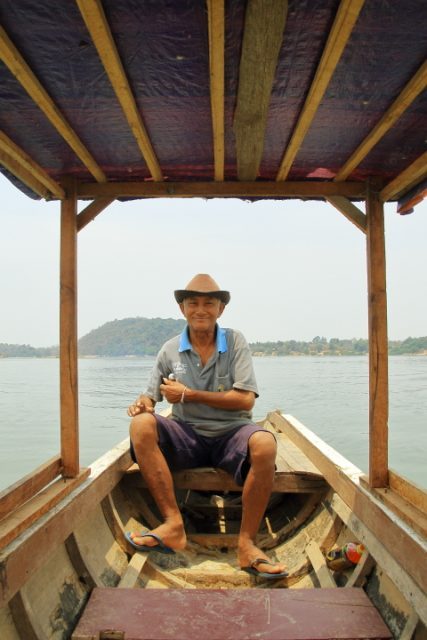 20미터 남짓한 로컬 보트에 약 20여 명이 승선했다. 그 누구도 보트의 승선 인원이나 무게를 책정하지 않기에 보통은 강물에 반쯤 잠긴 채 운항한다. 덩치가 큰 몇몇 서양 여행자들 때문에 보트에서 사람이 내릴 때마다 보트는 좌우로 휘청거린다. 머리칼이 날릴 만큼 적당한 강도로 불어오는 강바람과 바람을 맞으며 물살을 가르며 달려가는 보트에 앉아있는 기분은 상상하는 것 보다 상쾌하다. 예전에 시티투어를 하는 2층 버스를 탄 적이 있는데 시시각각 변화하는 모습에 자리에 앉지도 못하고 좌로 우로 오가며 난리 블루스를 춘 적이 있다. 그에 비하면 시판돈의 돈콘 섬으로 향하는 이 보트는 무척이나 평화롭고 좌, 우로 펼펴진 풍경이 비슷해 욕심을 낼 필요도 없다. 메콩 강을 삶의 터전으로 살아가는 이들에게는 이 섬들이 어떤 의미인지는 모르겠지만 여행자들에게 시판돈이란, 분명 매력적인 곳이 아닐 수 없다. 좋아하는 노랫소리가 이어폰을 통해 전해지니 눈과 귀가 묘한 하모니를 이룬다. 심장 박동은 조금씩 빨라지고 아드레날린이 분비되는 느낌이다. 다행히 나만 느끼는 감정이 아니라 보트에 탄 모든 이가 느끼고 있는 듯하다.