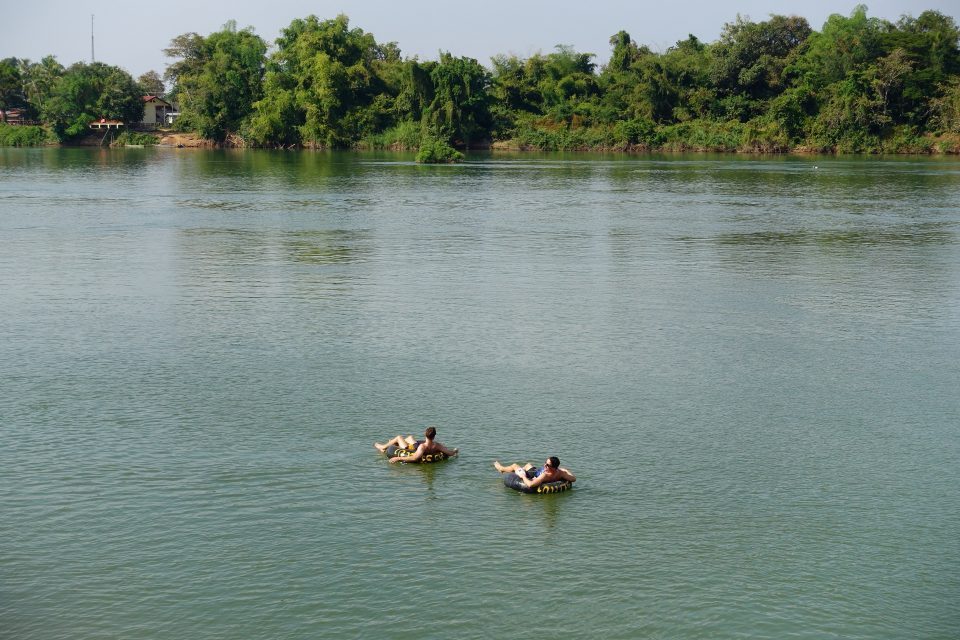 섬이 뜨거워지기 전 자전거를 타고 돈뎃 섬을 한 바퀴 돌아보기로 했다. 계획은 이렇다. 먼저 우정의 다리를 건너 섬의 동쪽을 둘러보며 선착장으로 이동, 일광욕과 튜빙을 즐기고 점심 식사를 한 뒤 서쪽으로 한 바퀴 돌아오는 것이다. 섬을 둘러보는 동안 숙소도 몇 곳 둘러볼 셈이다. 자전거를 타고 우정의 다리에 올라 유유히 흐르는 메콩 강과 섬의 풍경을 잠시 구경했다. 아침부터 강물에서 물놀이를 즐기는 아이들이 보이고 분주하게 하루를 시작하는 현지인들의 모습도 보인다. 평온함 그 자체다. 다리 건너에는 띄엄띄엄 숙소들과 레스토랑들이 이어지지만 특별히 눈길을 끄는 곳은 없다. 이른 시간임에도 섬의 하루는 빠르게 흐르고 있다. 오전에 섬 밖으로 나가려는 여행자들은 배낭과 짐을 메고 선착장으로 이동하고 여행자들 태운 보트들은 연신 섬의 이곳저곳을 오가고 있었다.