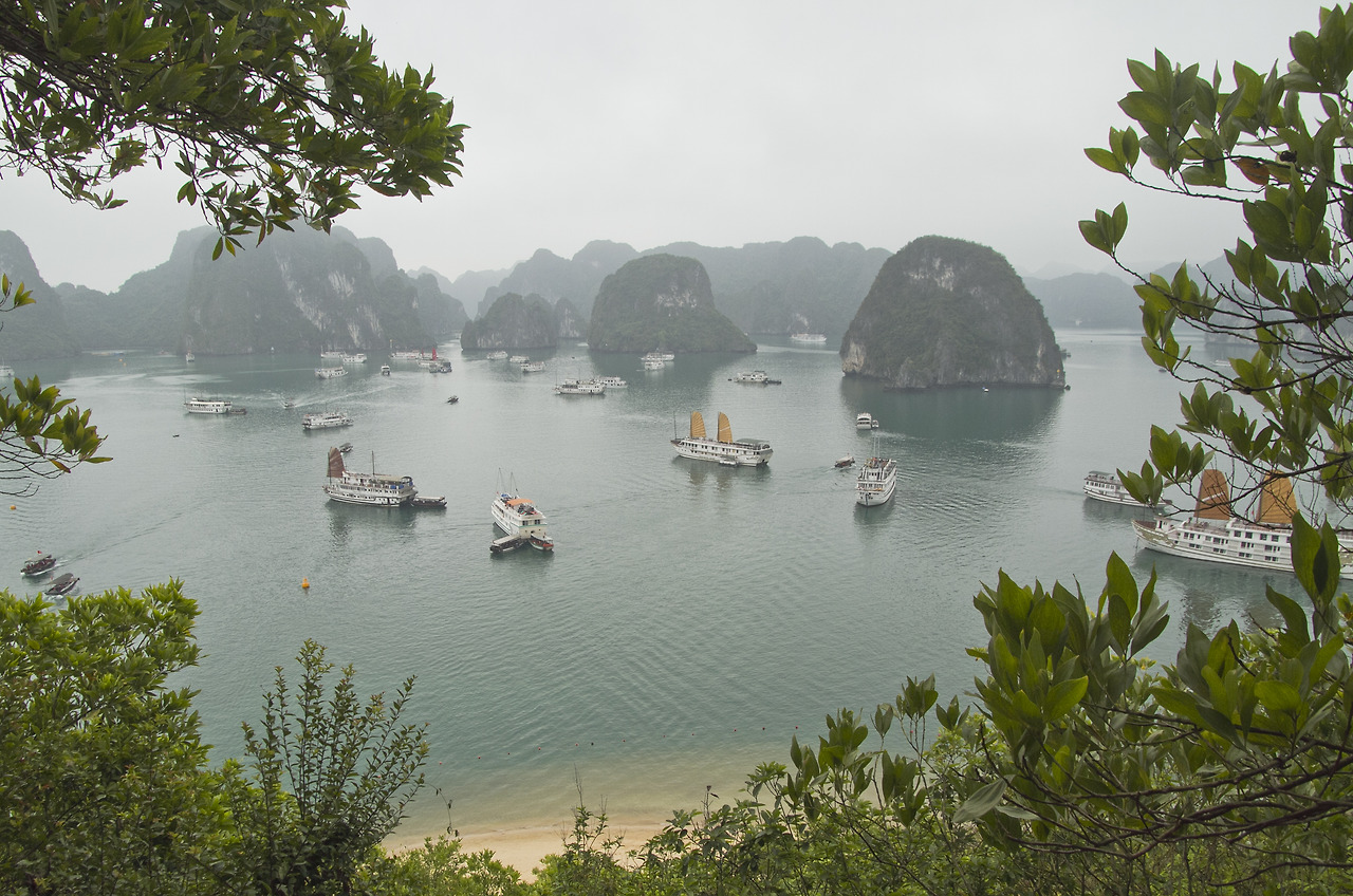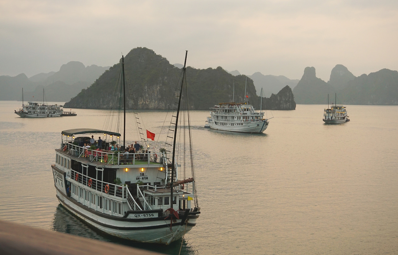 하롱베이는 베트남 북동부 지역에 위치한 세계 8대 비경에 손꼽히는 명승지로 하노이에서 동쪽으로 약 170km 위치에 있다. 비취색의 고요한 바다와 수면 위로 솟아오른 3,000여 개의 기암괴석들이 만들어 내는 환상적인 해안 절경은 중국의 계림과 비교되어 ‘바다의 계림’이라고도 불린다. 1994년 유네스코 세계문화지정 자연유산으로 등재되기도 했으니 풍광은 굳이 설명하지 않아도 될 터. 보통 하롱베이 여행은 선박을 타고 즐기는 크루즈 형태로 진행된다. 간단한 음료와 다과 정도가 제공되는 소형 크루즈부터 파인 다이닝과 숙박 시설까지 갖춘 고급 크루즈까지 여행자의 취향에 따라 선택할 수 있는 크루즈 사의 폭도 넓은 편이다. 당일로 다녀오는 크루즈를 포기하고 굳이 1박 2일의 크루즈를 선택한 가장 큰 이유는 '하롱베이의 아침'을 경험해보고 싶었기 때문이다. 크루즈 일정은 대부분 대동소이하다. 오전에 하노이를 출발해 점심 무렵 하롱베이에 도착하고 해당 크루즈 업체의 사무실에서 잠시 대기를 하다가 정해진 선박에 승선한다. 일정에 따라 1~4 일 동안 업체마다 약간씩 다르지만 하롱베이 인근 섬과 동굴 등을 방문하고 수상 액티비티를 즐기는 형태다. 주류를 제외한 모든 식사와 음료는 크루즈 요금에 포함되어 있는 경우가 대부분이다.