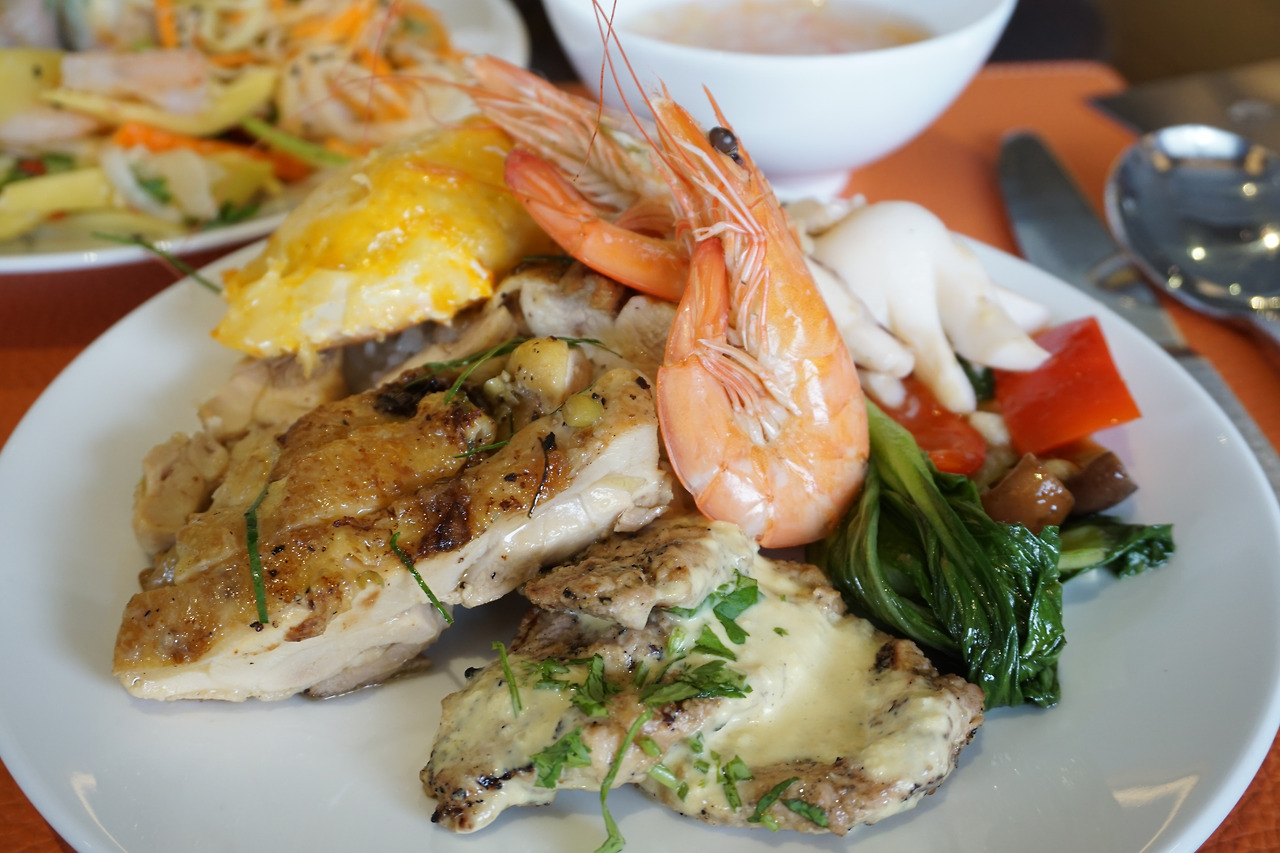런치 타임 : 크루즈선에 승선해 배정된 선실에 짐을 놓고 잠시 쉬다 나오니 이번 크루즈를 함께할 선원들의 소개가 진행 중이다. 안전과 관련된 사항도 이어진다. 별 관심은 없지만 잠자코 기다린다. 이윽고 기다리던 런치 타임이다. 점심은 간단한 뷔페식으로 각종 해산물과 과일, 샐러드 등이 준비되고 단품 요리도 주문이 가능했다. 주류를 제외한 1박 2일 동안의 모든 식사가 크루즈 요금에 포함되어 있으니 그냥 행복하게 먹기만 하면 된다. 갑자기 기분이 좋아지기 시작했다.