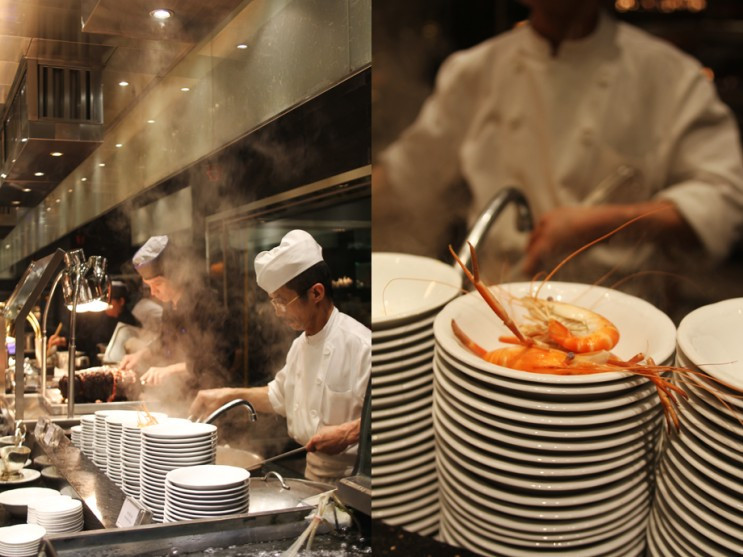 다시 한번, 느낀 사실은 난 야채보다 해산물을 좋아하고 해산물보다는 육류를 선호한다는 것을 깨달았다. 아시아에서 가장 긴 뷔페라는 사실을 알게 된 것은 음식을 다 먹고 난 뒤였다. 그러나 정작 중요한 것은 기나긴 뷔페 라인이 아니라 음식 하나하나의 퀄리티! 그랜드뷔페의 요리는 하나하나가 메인메뉴에 버금갈 만큼의 수준이었다. 몽골리안 스타일의 그릴 요리를 비롯하여 뜨거운 철판 위에서 익혀지는 테판야키와 인디언 카레 등 즉석에서 요리되는 만큼, 신선한 재료를 눈으로 확인할 수 있어 믿을 수 있었다.