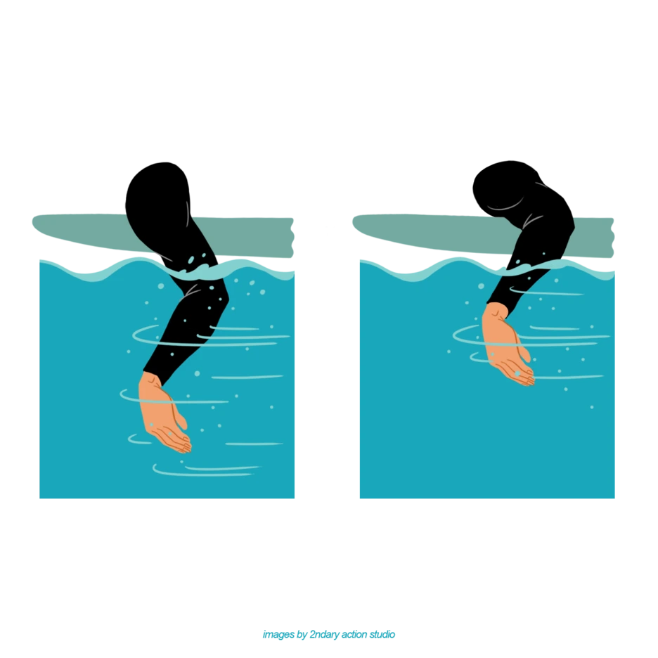 그림에서 보는 것처럼, 같은 보드일 때라도, 어깨너비에 따라내가 패들링 할 때 물속으로